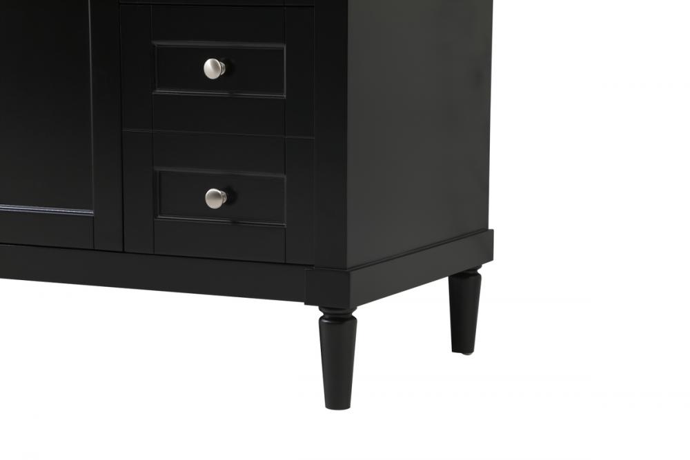 This transitional vanity is a beautiful piece of bathroom furniture will look amazing in your design scheme. The cabinet features a shaker style smooth door panel with simple round knobs and soft close hinges provide ample room for accessories. Packed with multiple side drawers with soft close glides for added comfort and full access to bath supplies. Convenient deep drawer stores all of your tall bath essentials. Constructed of engineered wood and solid wood legs with hand painted finish. The durable engineered marble countertop is a versatile material in an ivory white finish. Minor assembly of the legs needed to get this vanity up and running. Comes with a matching backsplash to complete the look and protects your wall.