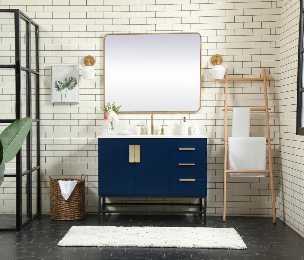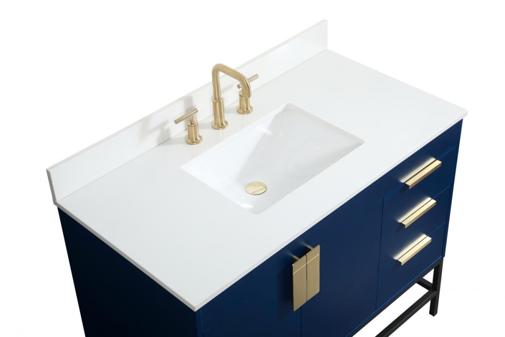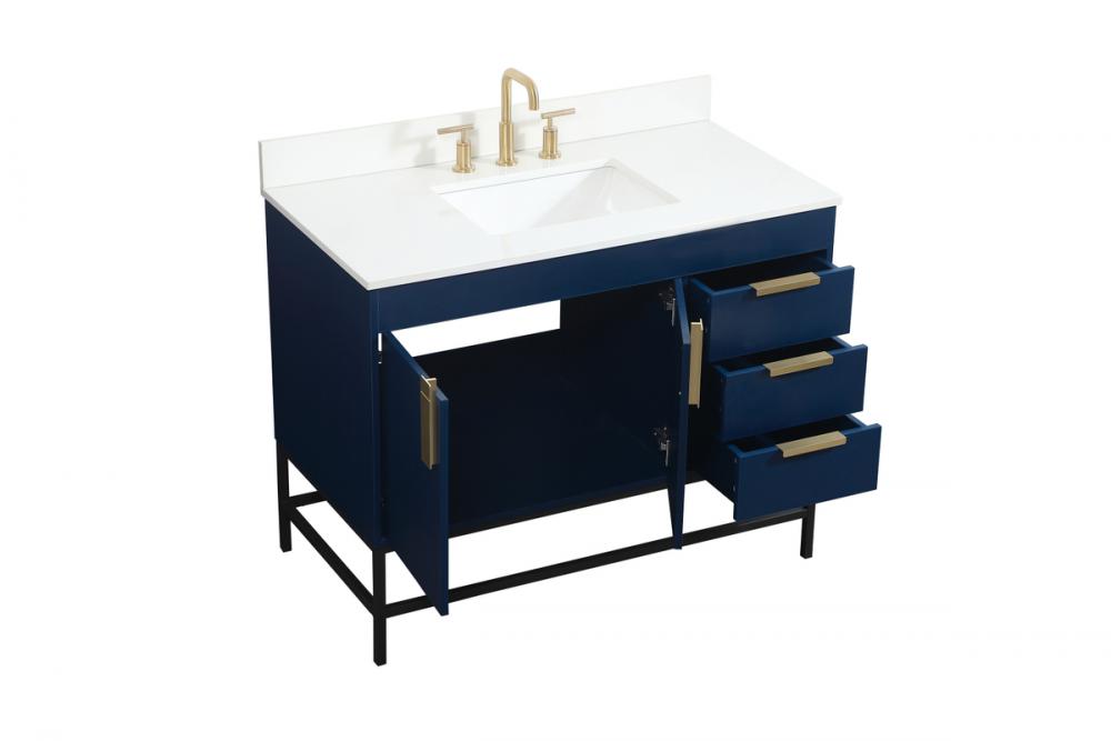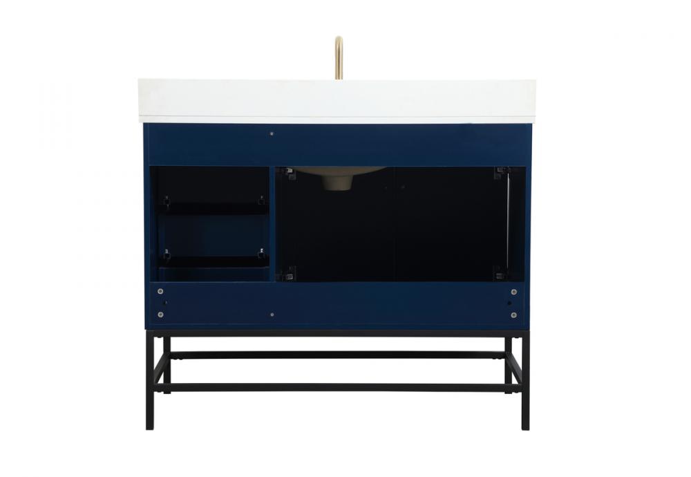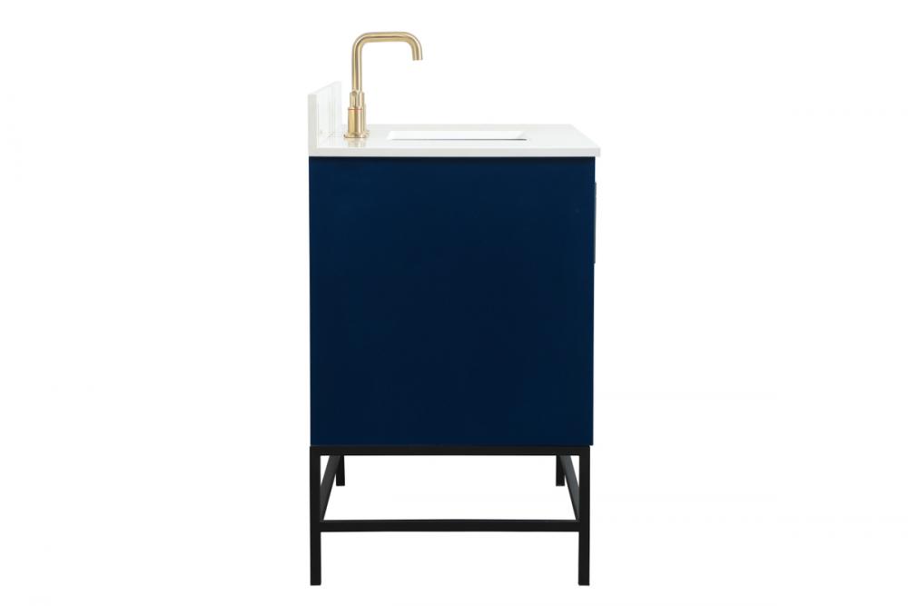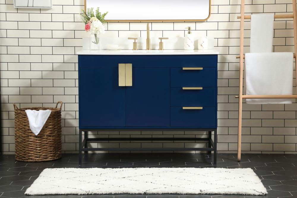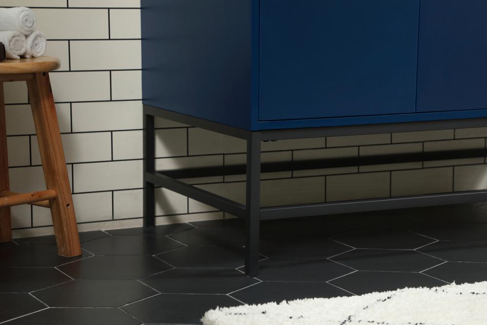 This vanity is a sleek-looking piece of bathroom furniture that is easy to incorporate into your design scheme. The cabinet features a smooth door panel with an oversized steel handle and soft close hinges provide ample room for accessories. Constructed of engineered wood, the powder-coated metal rod legs are an urban industrial look that we love. Minor assembly of the metal legs needed to get this vanity up and running. Comes with a matching backsplash to complete the look and protects your wall.