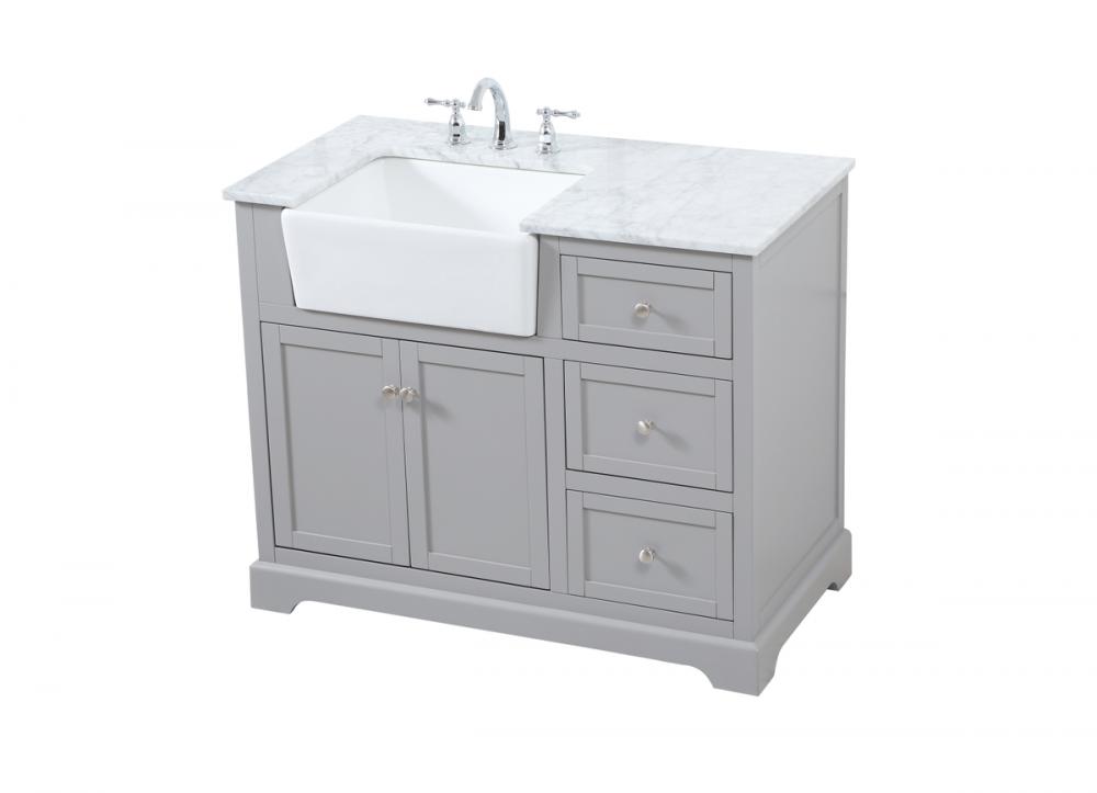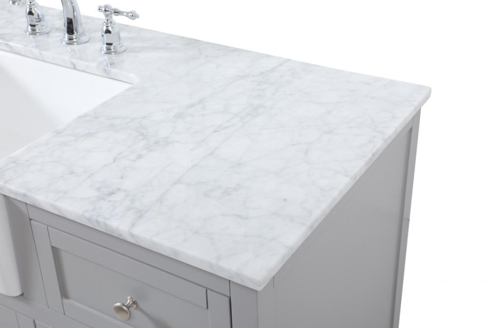 Comes with an apron porcelain sink and durable marble stone top in carrara white finish