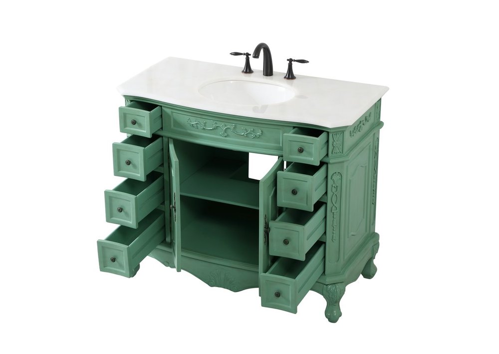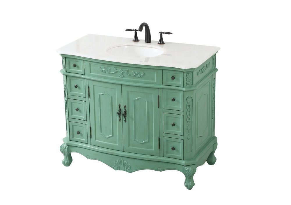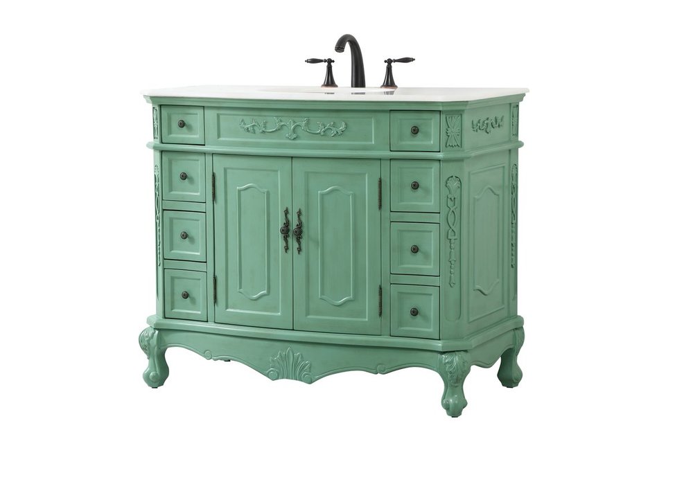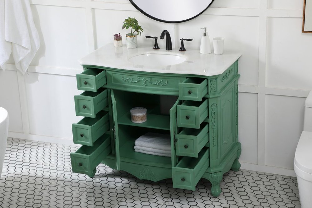 Elegant VF-1008VM-VW - 27 inch Single Bathroom vanity in vintage mint with ivory white engineered marble