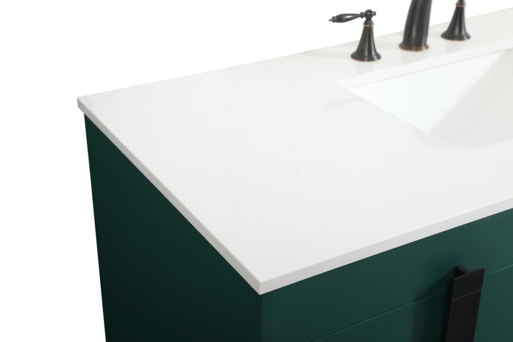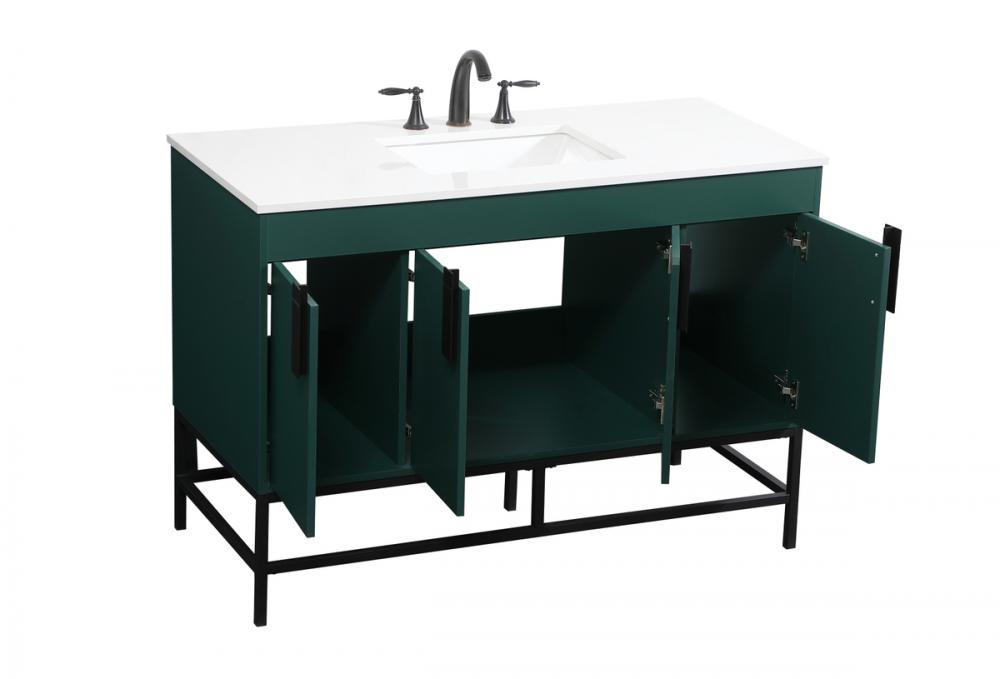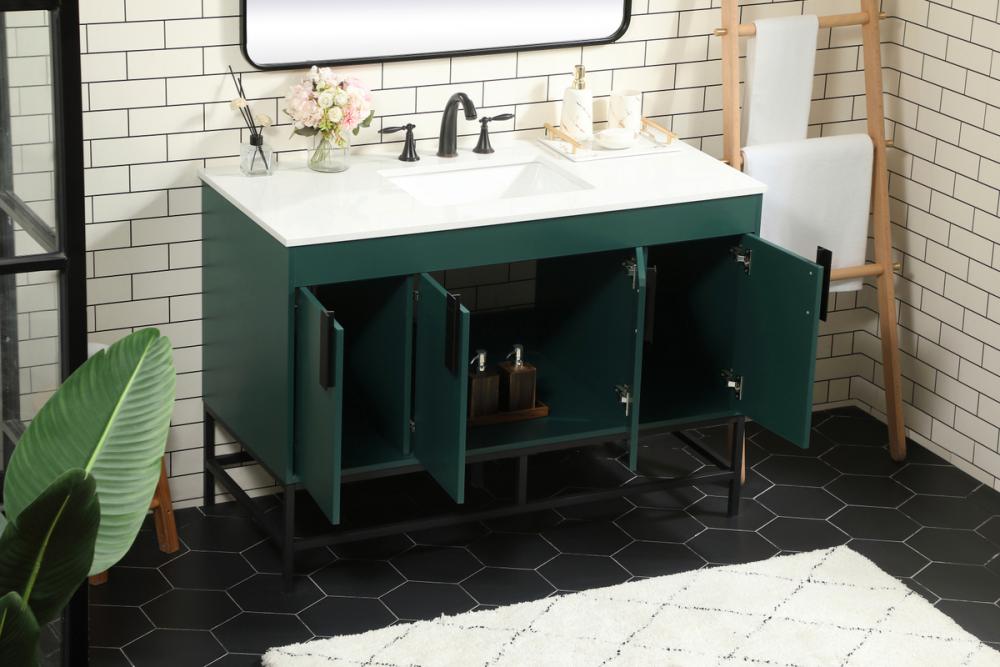 This vanity is a sleek-looking piece of bathroom furniture that is easy to incorporate into your design scheme. The cabinet features a smooth door panel with an oversized steel handle and soft close hinges provide ample room for accessories. Constructed of engineered wood, the powder-coated metal rod legs are an urban industrial look that we love. Minor assembly of the metal legs needed to get this vanity up and running.