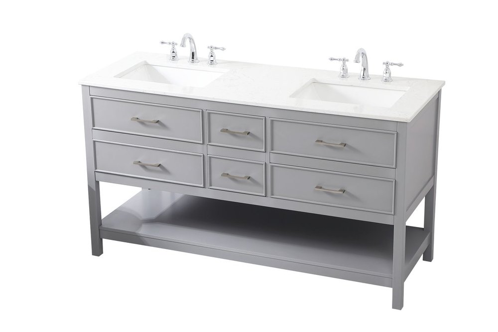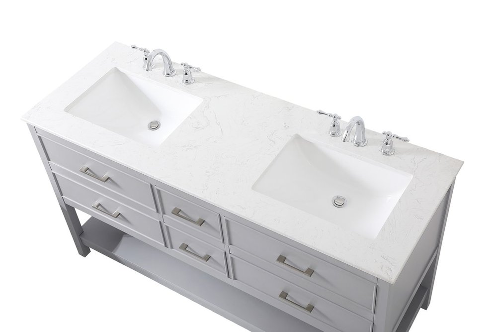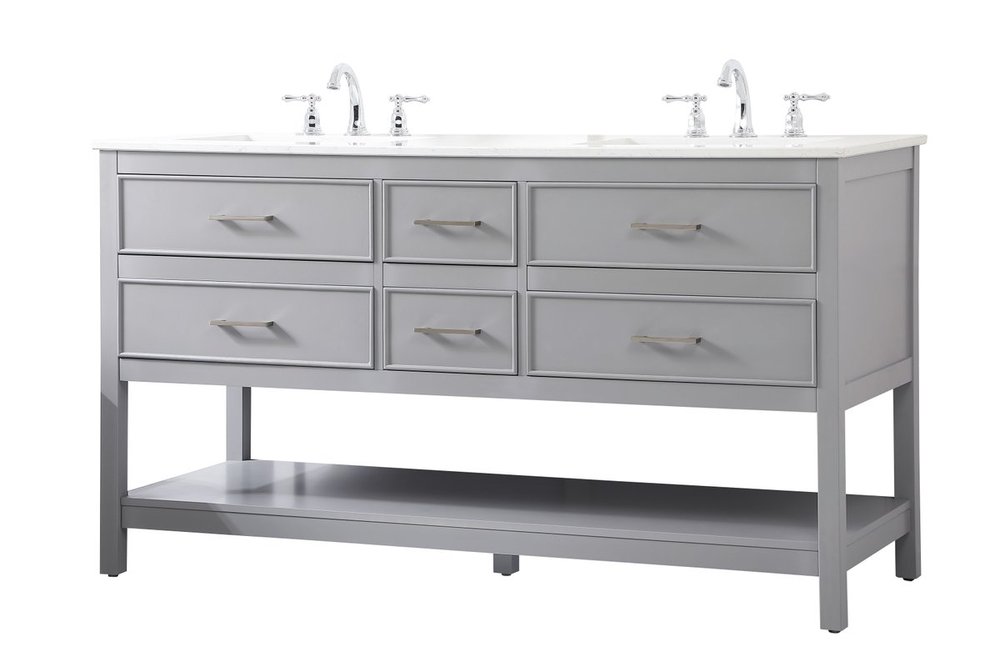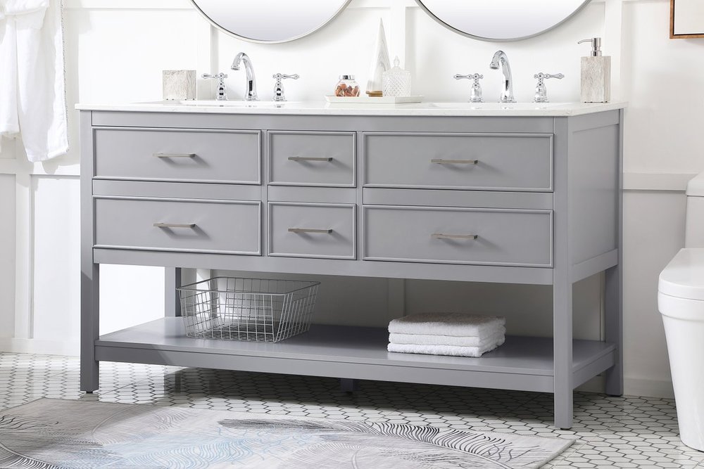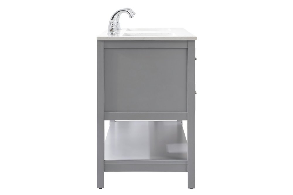 Make the most of your space with this traditional style bathroom vanity. Complements well with many aesthetics with its beautiful finish, calacatta engineered marble countertop, and the contemporary slender handle bar that sits on six functional drawers with soft closing mechanism, allowing you to store an assortment of bathroom essentials. The lower shelf makes it the perfect space to hold new towels for your guests. This compact vanity ensures both form and function in your bathroom or powder room for you and your guests.
