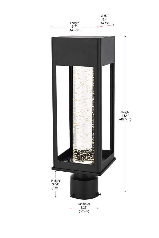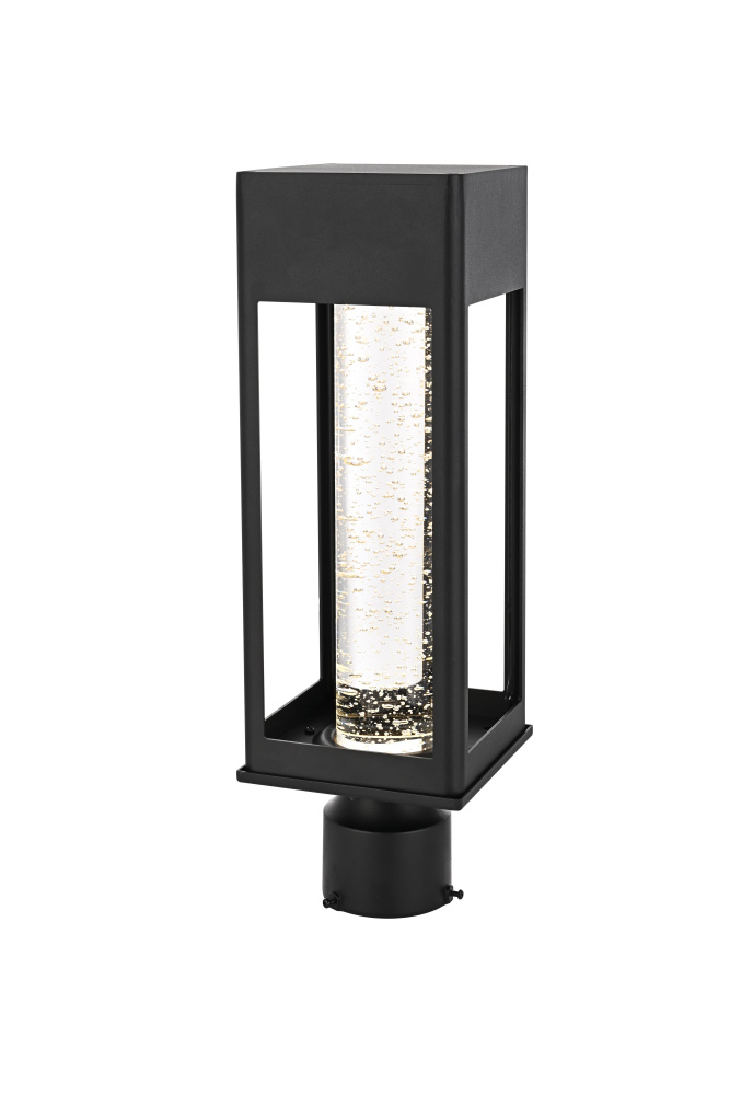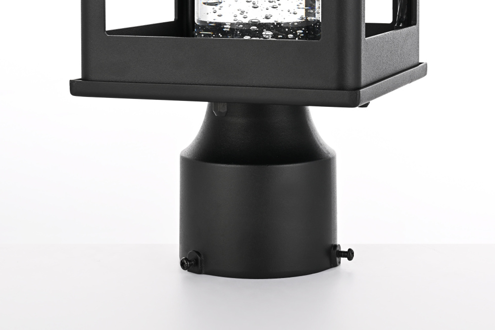 Designed for outdoor spaces that demand both structure and function, this LED post light features a rectangular open-frame metal structure in a black finish, creating a bold, architectural presence. The thick 2.5-inch clear seedy glass cylinder diffuses light softly, producing a warm 3000K glow at 300 lumens. Built for durability, the iron and aluminum frame ensures long-lasting performance, while the ETL Wet Rated certification makes it ideal for exposed outdoor areas like driveways, pathways, and patios. With a 3.23-inch base, this fixture fits most standard post light poles (pole not included), offering flexibility in installation. The integrated 11W LED provides energy-efficient illumination, and its dimmable functionality allows for adjustable brightness. Pre-wired with a 7-inch lead, this post light is a modern, practical choice for enhancing outdoor landscapes. Built with marine-grade, corrosion-resistant aluminum, this sconce withstands coastal conditions for long-lasting durability.