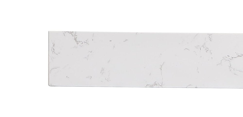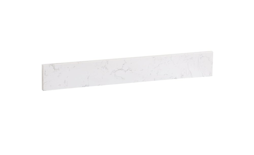 30 inch Backsplash in calacatta white designed to protect your bathroom walls from splashes and stains.