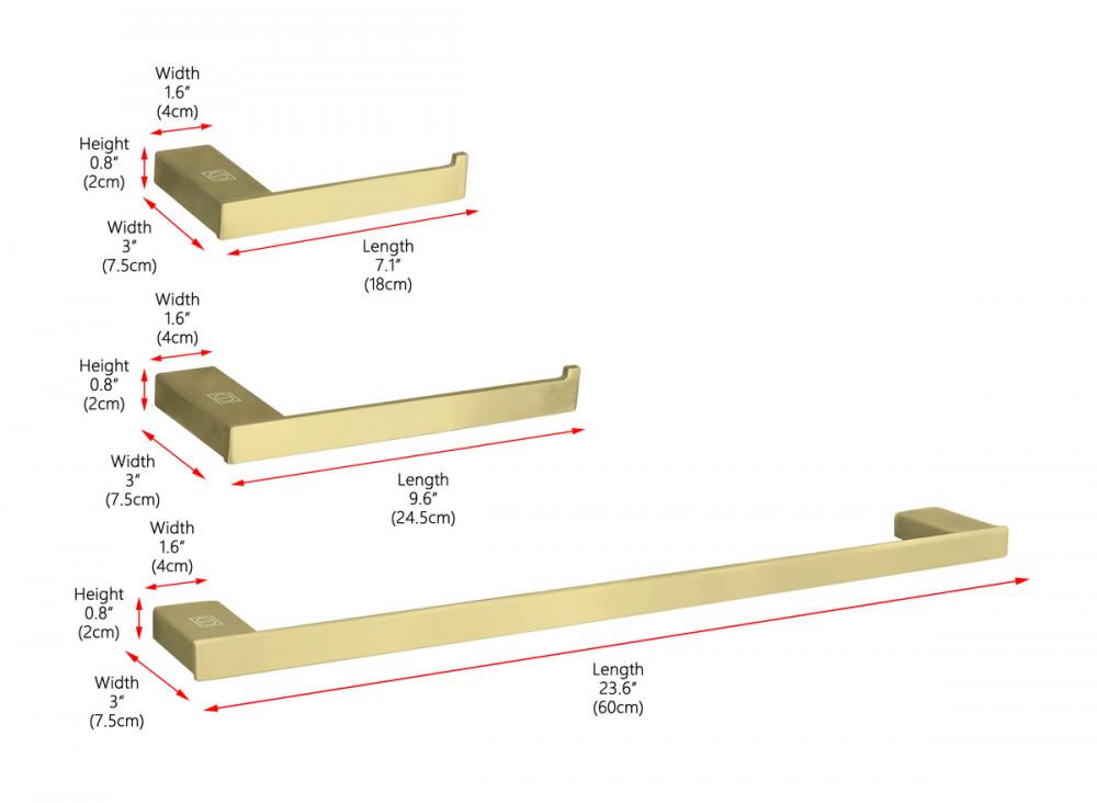 Upgrade your bathroom with our exclusive Bathroom Hardware Set, available in a range of stylish finishes: brushed gold, brushed nickel, Chrome, and Matte Black. This meticulously designed set offers the perfect combination of style and utility, featuring an impressive 23.6" long towel bar and a convenient 7.1" long toilet paper holder, effortlessly enhancing your bathroom's functionality and elegance. Crafted from high-quality stainless steel, our hardware set not only adds a touch of luxury to your bathroom but also ensures unrivaled durability. Stainless steel's inherent resistance to corrosion, stains, rust, and scratches guarantees that your bathroom remains as stunning as the day you installed it. The open-ended design of the toilet paper holder simplifies roll replacement, providing convenience and practicality. Installation is a breeze, thanks to the included mounting hardware, making it a straightforward DIY project for homeowners. Each item is thoughtfully designed for wall-mounted installation, saving space and ensuring a secure fit. The stainless steel finish is not only visually appealing but also easy to maintain, eliminating the need for frequent scrubbing and polishing. The minimalist design of our hardware set ensures its adaptability to any bathroom decor, making it the ideal addition to your space. Invest in a bathroom that retains its stunning appearance, thanks to our hardware set's corrosion, stain, rust, and scratch resistance. Experience the perfect combination of aesthetics and functionality, complete with easy installation and easy maintenance. Elevate your bathroom with our premium Bathroom Hardware Set, where style, convenience, and durability converge to transform your bathroom into a more elegant and efficient space.