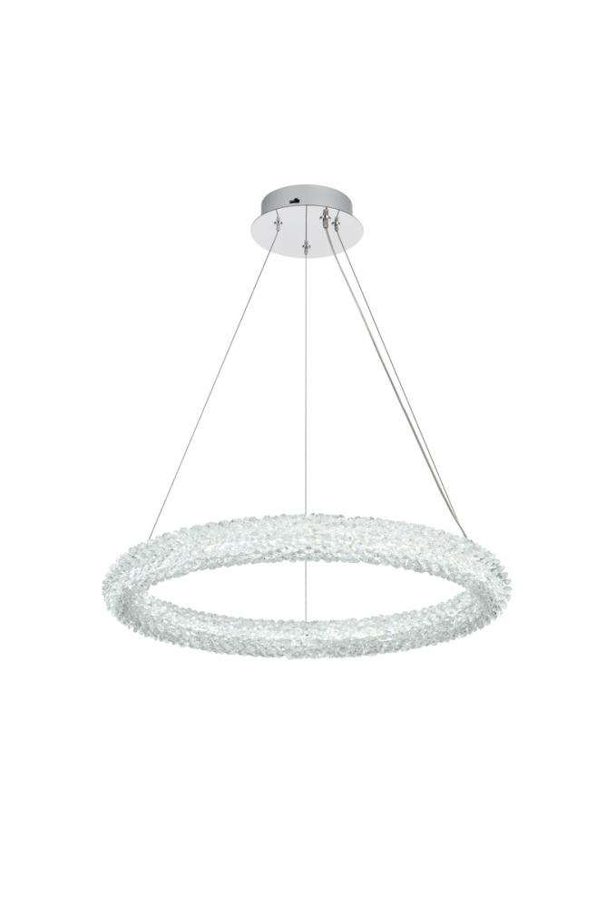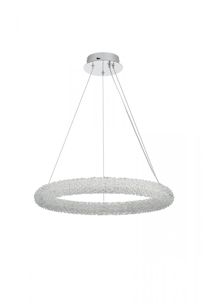 Elevate your surroundings with the chic design of this 24 inch LED Chandelier, showcasing a captivating round crystal-adorned chandelier and an elegant 7-inch canopy for a touch of sophistication.