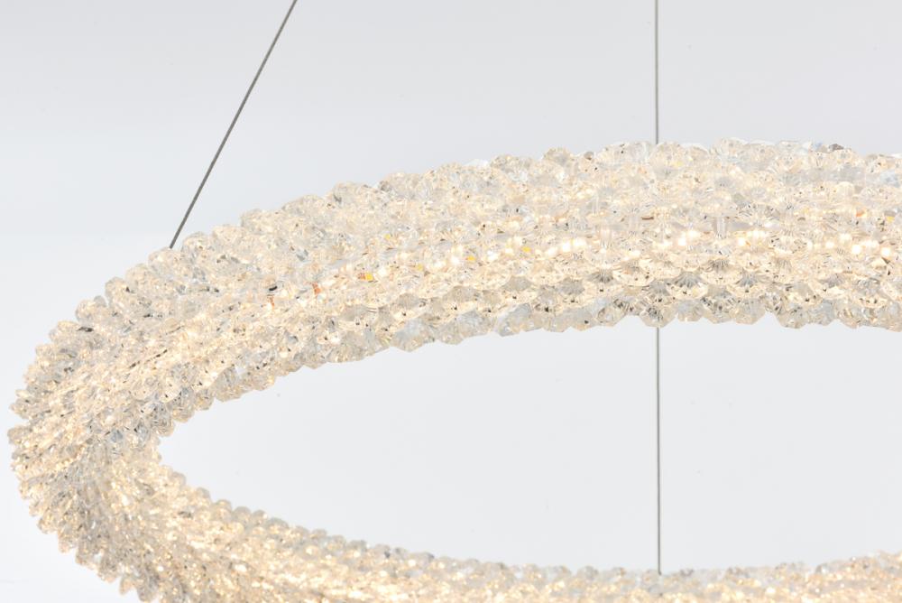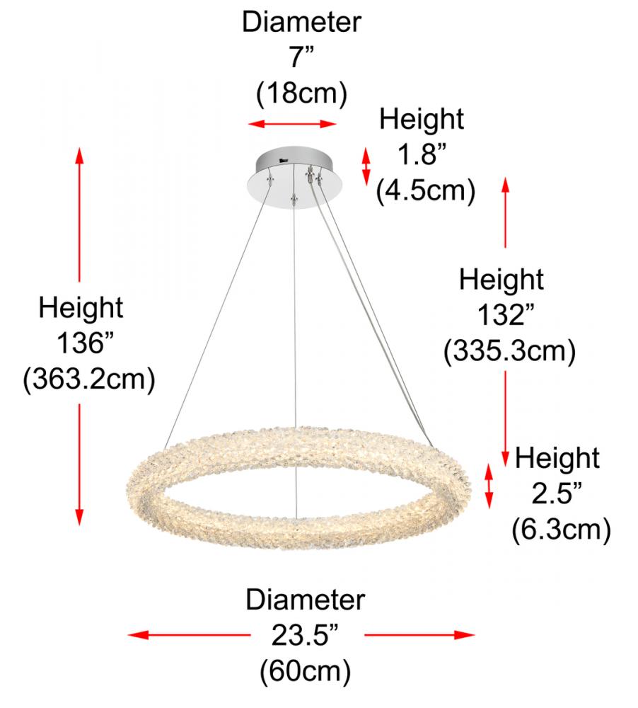 Elevate your space with our 24-inch LED Chandelier, a perfect blend of chic design and sophistication. Customize your lighting with an adjustable height from 10 to 136 inches. Experience a hassle-free installation with no assembly required. Choose from three color temperatures (3000K, 4500K, 6000K) to set the perfect mood for any occasion. Crafted with durable Iron and Crystal materials, this chandelier promises long-lasting reliability. ETL listed for safety compliance, it ensures a secure and reliable lighting solution. Embrace hassle-free brilliance with integrated LED technology, eliminating the need to buy bulbs for enduring and maintenance-free illumination."