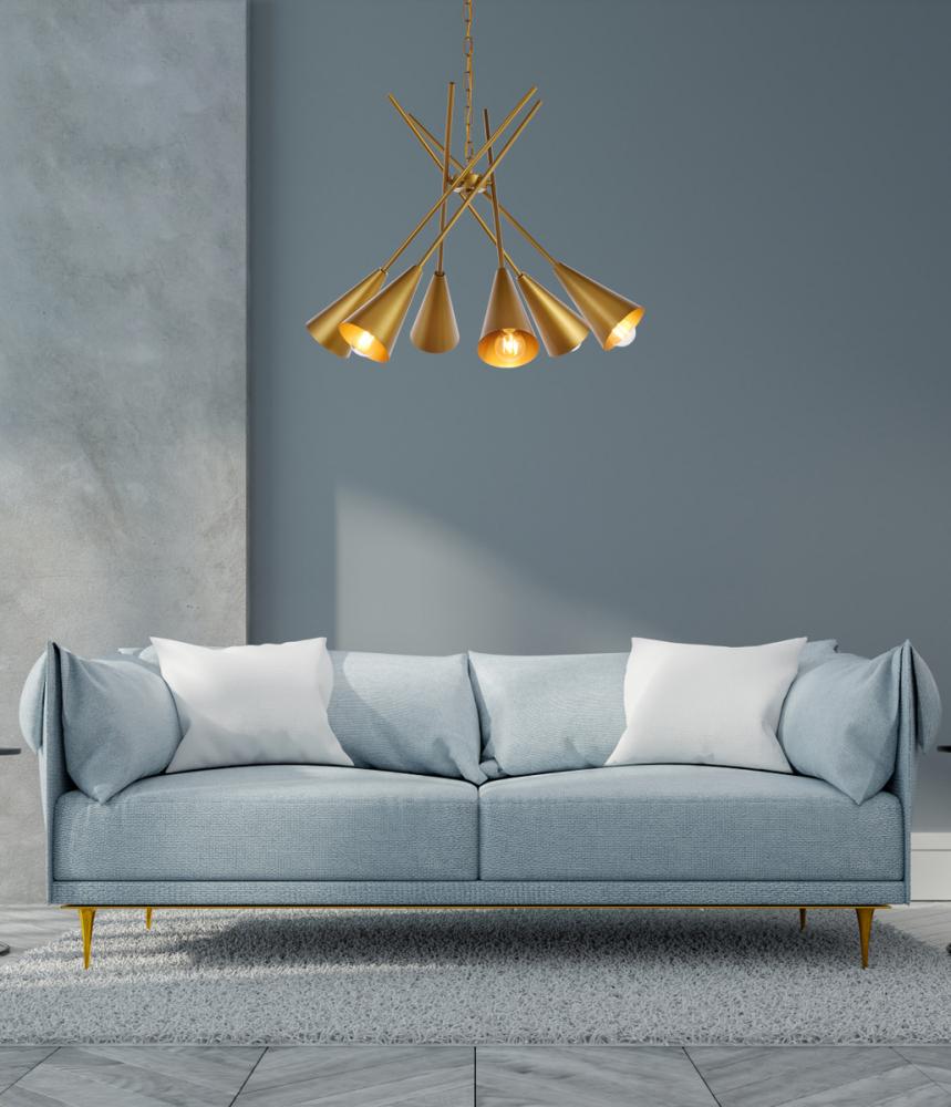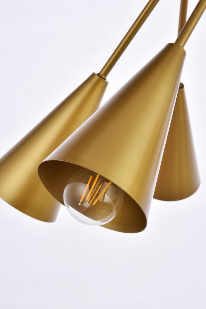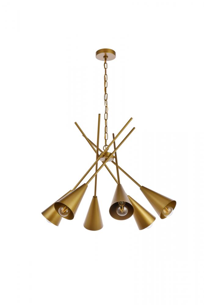 Greet guests with a warm and welcoming glow in the entryway or dress up your dining room for an upcoming dinner party with this eye-catching chandelier. Sure to make a statement in any setting, it is a metal frame takes on a sputnik-inspired silhouette with bursting rays of downward cone shades. Six lights are distributed throughout, each exposed to create an even gleam. Installation is required for this hardwired dimmable fixture. Rods are adjustable to the desired height.