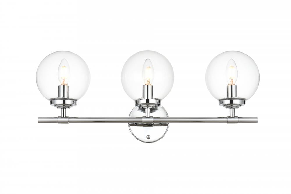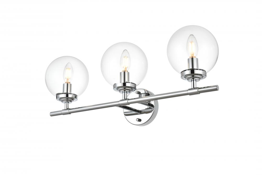 This armed sconce features a streamlined and minimalistic design that complements any space in your home. Shown with the clear glass shades, this wall sconce is versatile and can be placed in a bathroom,entry way, or hallway. Compatible with dimmers, so you'll have the right amount of light in any given time of the day. The hardwired fixture is safe to use in damp locations. Made from iron with a modern finish, it includes a round backplate and a matching arm that holds in place three 40W bulb ( sold separately). Available in multiple finishes. Can be installed as an uplight or a downlight.