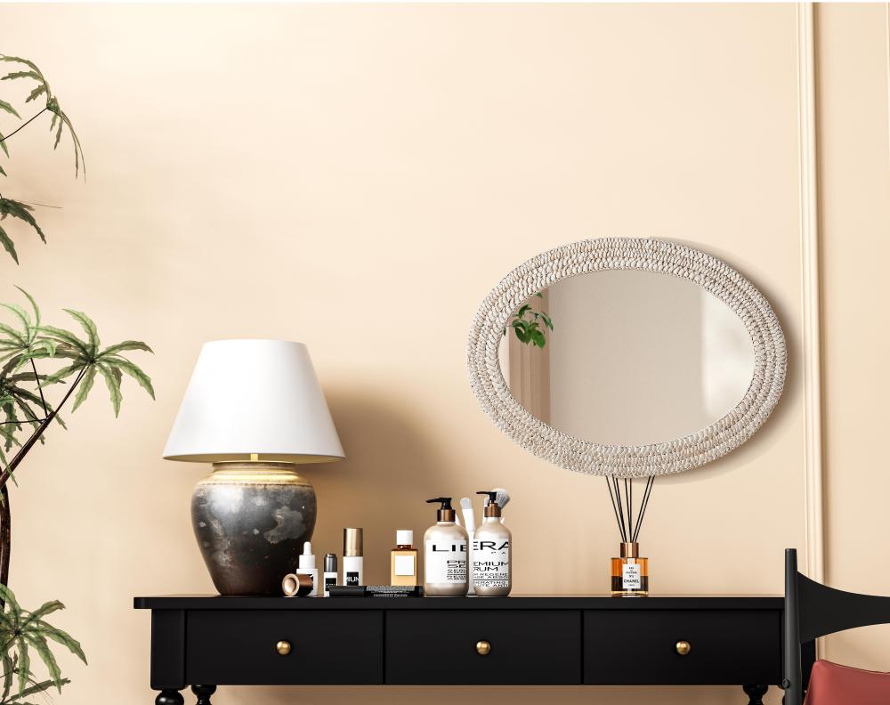 Transform your space with this stunning wall mirror that blends natural charm with functional design. Crafted from MDF, cornhusk, and high-quality mirror, the textured woven frame brings warmth and character to your decor. Whether you're decorating a hallway, living room, or bedroom, this mirror comes in a variety of shapes—including rectangle, round, oval, and arch—along with multiple size options to perfectly suit your needs. Designed for versatility, the mirror features three inset metal hangers, allowing you to mount it either vertically or horizontally with ease. Its reflective surface not only adds a touch of brightness but also creates the illusion of a larger room, enhancing your space. with durable materials and ready-to-hang hardware, this mirror is as practical as it is stylish, making it a must-have piece for any home.