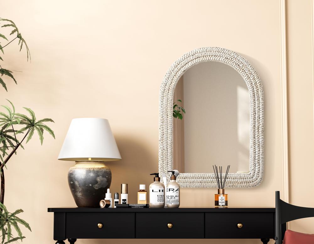 Transform your space with this stunning wall mirror that blends natural charm with functional design. Crafted from MDF, cornhusk, and high-quality mirror, the textured woven frame brings warmth and character to your decor. Whether you're decorating a hallway, living room, or bedroom, this mirror comes in a variety of shapes—including rectangle, round, oval, and arch—along with multiple size options to perfectly suit your needs. Designed for versatility, the mirror features two inset metal hangers, allowing you to mount it vertically with ease. Its reflective surface not only adds a touch of brightness but also creates the illusion of a larger room, enhancing your space. with durable materials and ready-to-hang hardware, this mirror is as practical as it is stylish, making it a must-have piece for any home.