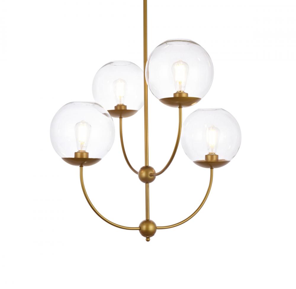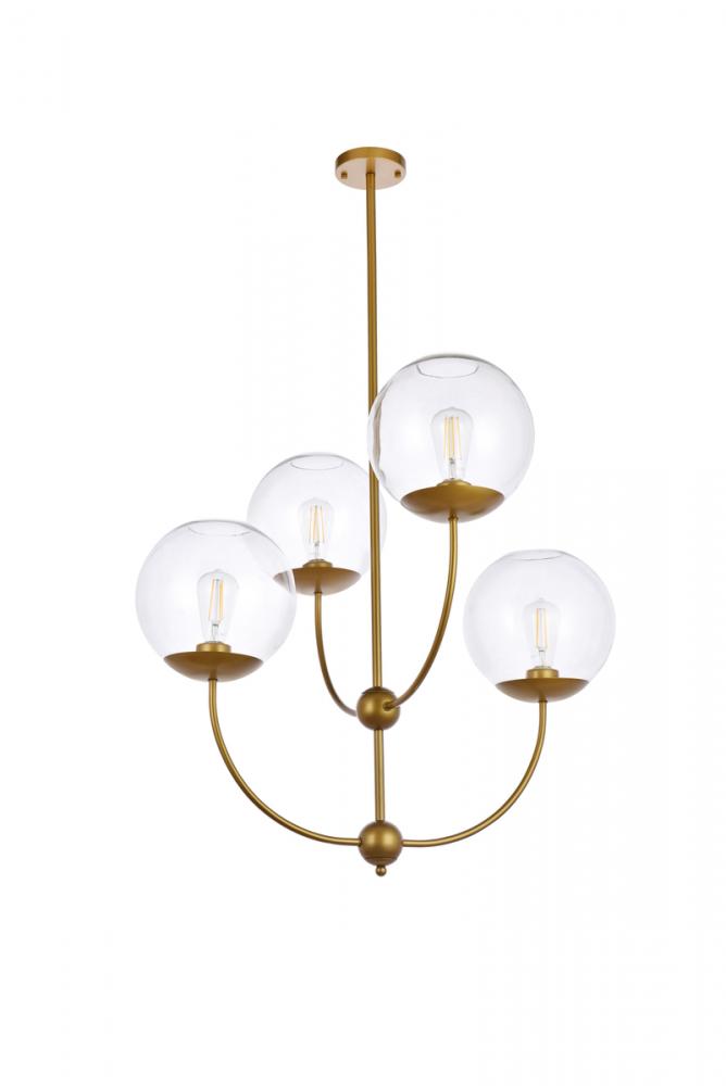 Add major mid-century modern style without taking up any valuable floor space with this 4-light chandelier. It's made from metal and features a slender shaped body that supports four rounded arms running parallel to the downrod. At each end of the arms there is a glass globe shade that diffuses the light from a 40W bulb (not included). This light arrives with an adjustable down rod.