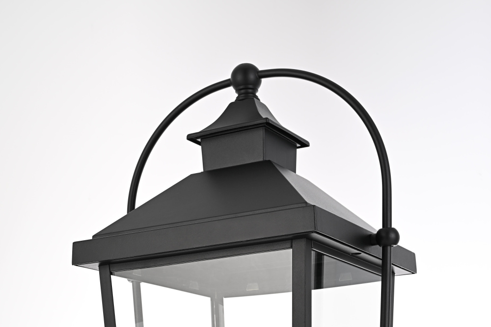 This post light brings a classic lantern silhouette to outdoor spaces, blending traditional design with modern functionality. The tapered rectangular frame, topped with a pitched roof and curved side supports, creates a distinctive, old-world charm suited for both historic and contemporary homes. Made from iron and aluminum, the sturdy metal frame ensures durability, while the clear glass panels allow maximum light output, making this fixture both decorative and functional. Designed to fit standard 3.23-inch post light poles (pole not included), it offers flexibility for placement in driveways, pathways, and garden landscapes. This fixture supports a medium-base E26 light bulb (not included) and is dimmable, allowing for adjustable brightness. ETL Wet Rated for outdoor durability, this post light is built to withstand the elements while enhancing exterior spaces with a structured and timeless presence. Built with marine-grade, corrosion-resistant aluminum, this sconce withstands coastal conditions for long-lasting durability.