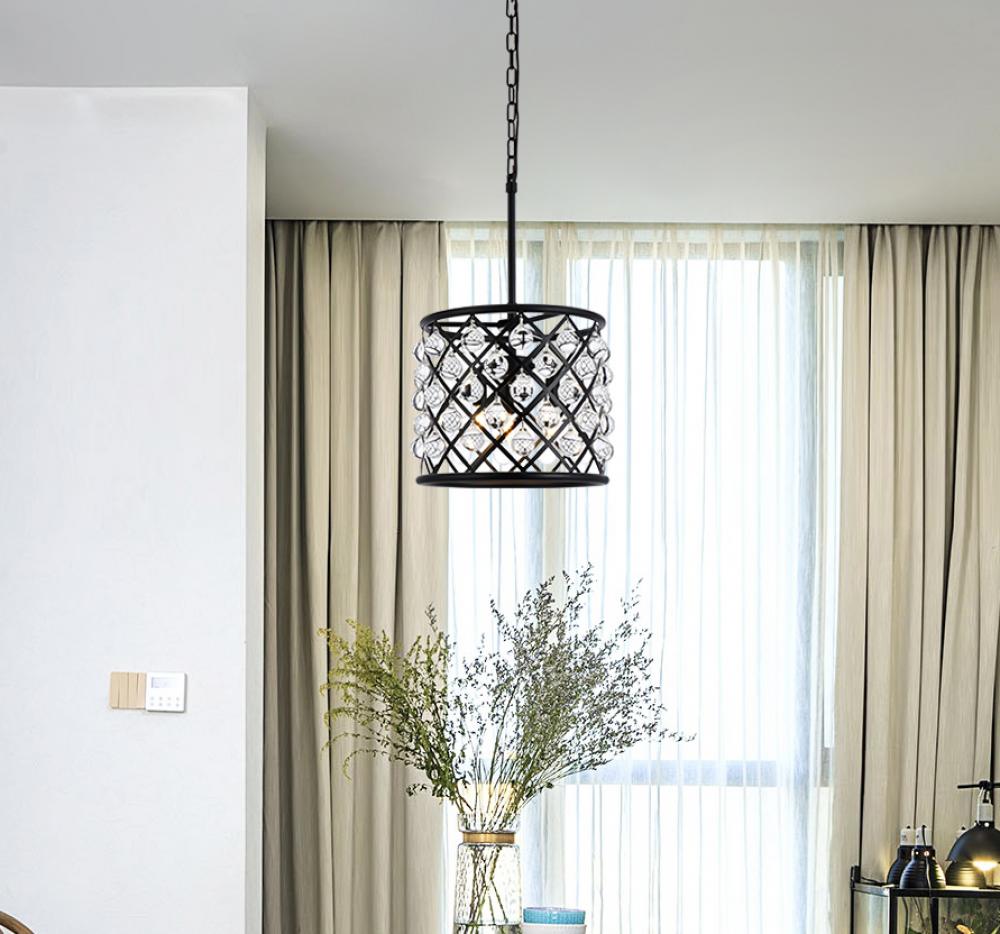 Modern simplicity meets organic beauty in the breathtakingly unique Madison collection. Hand-polished, multifaceted clear crystal spheres shimmer like dewdrops in a circular forged-iron grid with a golden-iron, Matte Black, or polished-nickel finish. These airy pendant lamps will brighten up a kitchen, dining room, foyer, or stairwell in an explosion of reflected light.