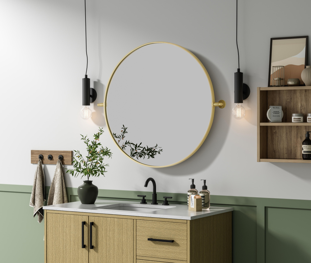 Elevate your space with the perfect blend of form and function—this sleek pivot mirror is designed to move with you. Crafted from durable iron with a sturdy MDF backing, it offers both stability and style. The 8-degree adjustable pivot allows for a customized viewing angle, making it ideal for bathrooms, bedrooms, and beyond. Finished with a hand-painted touch, this mirror is available in three elegant shades: black, silver, and brass, effortlessly complementing a range of interior aesthetics. Its modern round silhouette brings a timeless, minimalist appeal, making it a versatile piece for any room—whether placed in a living room, office, or entryway. Designed for effortless installation, this mirror comes with all necessary mounting brackets and screws, so you can upgrade your space in minutes. Whether you're seeking a functional bathroom essential or a sophisticated statement piece, this adjustable pivot mirror delivers in both style and practical