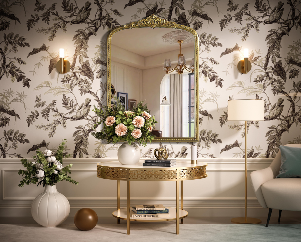 The mirror features a softly curved arch at the top, adding a refined and timeless touch to any space.