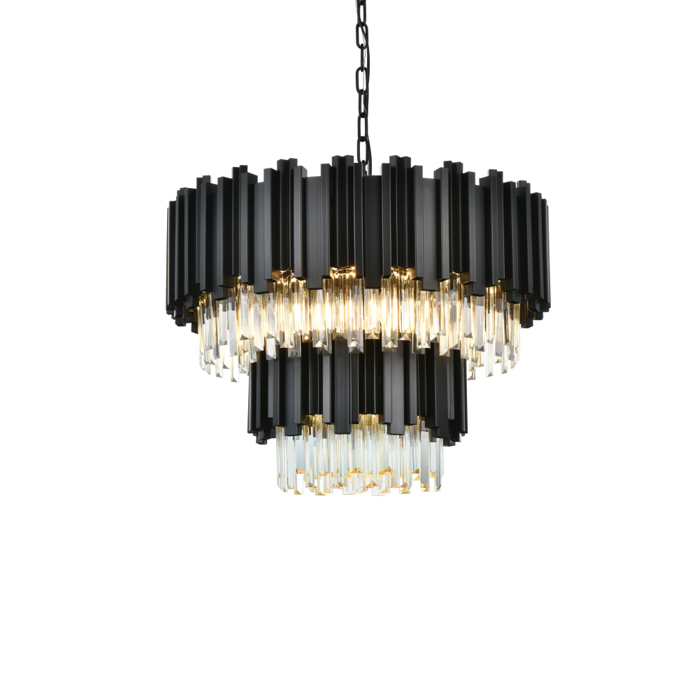 Transform your space with this stunning chandelier, a dynamic fusion of iron and staggered clear glass that exudes contemporary style and architectural artistry. The layered glass refracts light beautifully, creating a radiant display of glowing brilliance that fills the room with warmth and sophistication. The staggered arrangement of the metal and glass adds depth and dimension, making this chandelier an eye-catching centerpiece. Fully dimmable, it allows you to adjust the ambiance to suit any mood, from bright and vibrant to soft and inviting. Available in satin gold for a warm, luxurious vibe, chrome for sleek modernity, and black for bold, dramatic contrast, this fixture comes in various sizes to perfectly complement any space. Complete with a matching canopy, it’s an ideal choice for dining rooms, living rooms, or offices. Add a touch of refined geometry to your décor and bask in the brilliance of this radiant desi