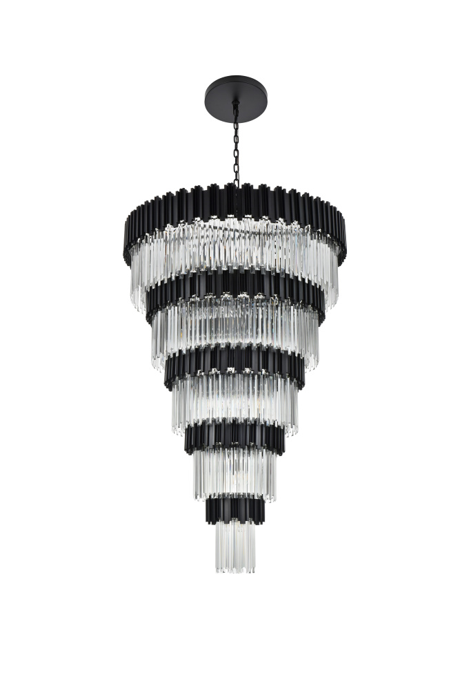 Transform your space with this stunning chandelier, a dynamic fusion of iron and staggered clear glass that exudes contemporary style and architectural artistry. The layered glass refracts light beautifully, creating a radiant display of glowing brilliance that fills the room with warmth and sophistication. The staggered arrangement of the metal and glass adds depth and dimension, making this chandelier an eye-catching centerpiece. Fully dimmable, it allows you to adjust the ambiance to suit any mood, from bright and vibrant to soft and inviting. Available in satin gold for a warm, luxurious vibe, chrome for sleek modernity, and black for bold, dramatic contrast, this fixture comes in various sizes to perfectly complement any space. Complete with a matching canopy, it’s an ideal choice for dining rooms, living rooms, or offices. Add a touch of refined geometry to your décor and bask in the brilliance of this radiant desi