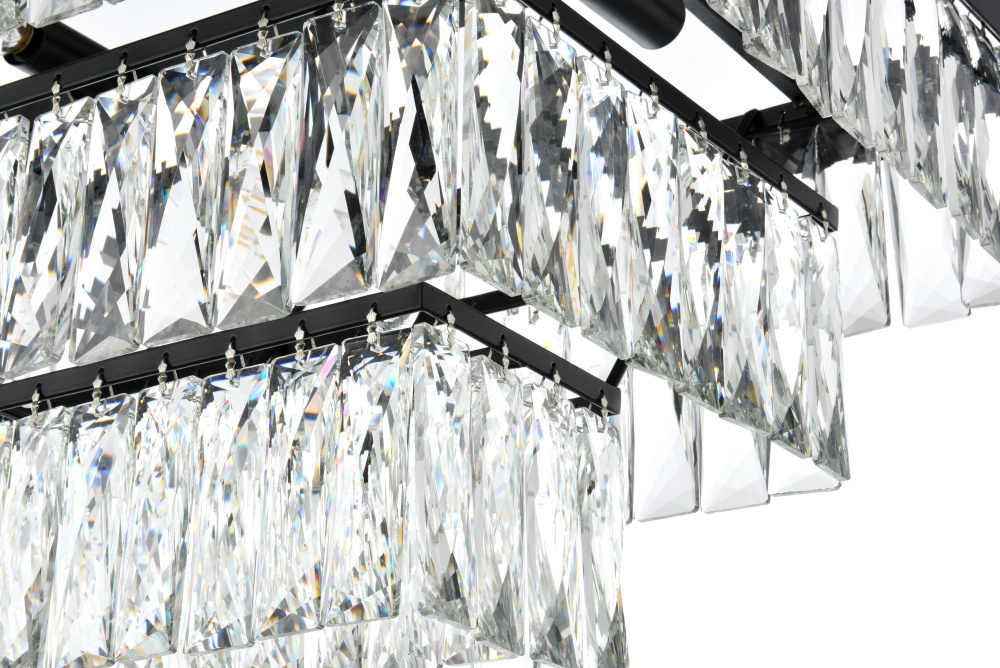 Three distinct crystal tiers form a stunning stepped silhouette beneath the linear frame.