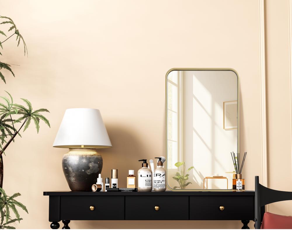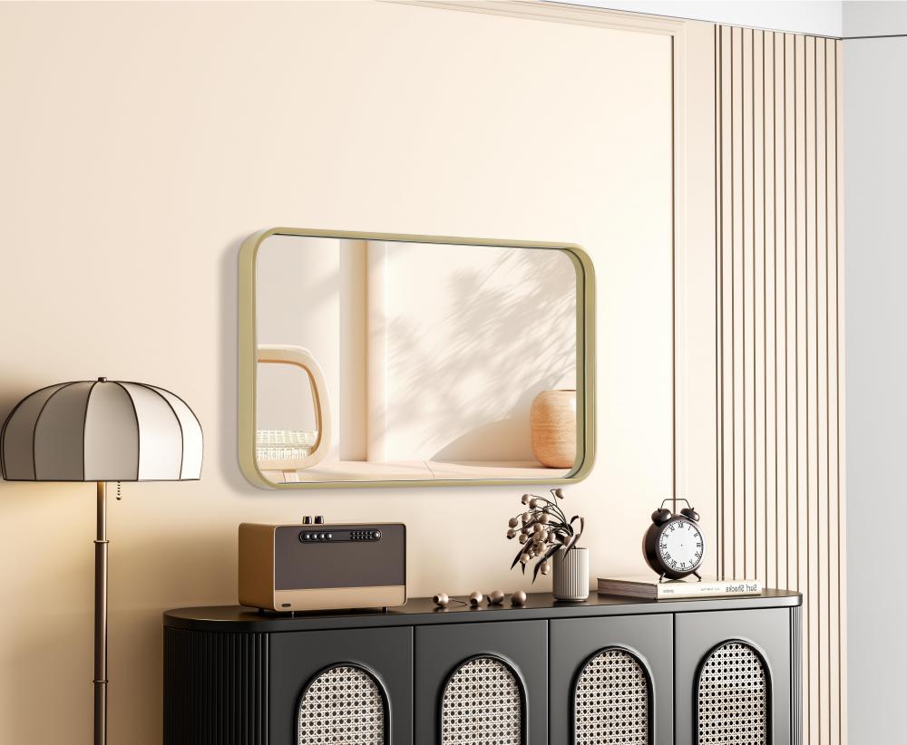 Elevate your home decor with this versatile wall mirror that combines functionality and modern design. Made from a sturdy combination of MDF, iron, and reflective mirror glass, this piece is built to last while adding a polished finish to any room. The extended depth of the frame not only provides a striking dimensional effect but also ensures the mirror’s presence commands attention as a focal point. Whether you're decorating a bedroom, bathroom, or entryway, its diverse shapes—including rectangle and square—offer plenty of options to suit your style. The hand-painted black, brass, or silver finish brings a subtle yet striking touch, complemented by rounded corners for a smooth and contemporary aesthetic. with four metal inset hangers, it's ready to hang vertically or horizontally, ensuring flexibility for any layout. Available in multiple sizes, this mirror is a statement piece that blends seamlessly into both modern and classic spaces.