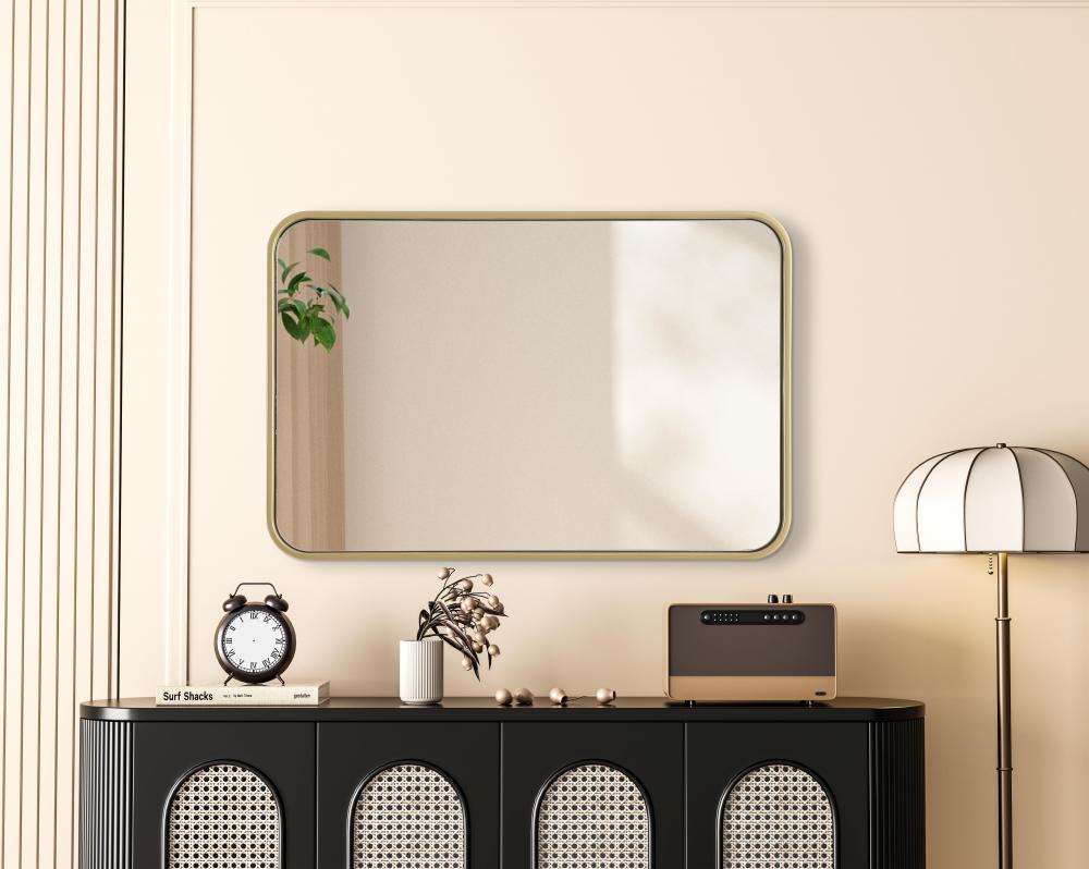 Elevate your home decor with this versatile wall mirror that combines functionality and modern design. Made from a sturdy combination of MDF, iron, and reflective mirror glass, this piece is built to last while adding a polished finish to any room. The extended depth of the frame not only provides a striking dimensional effect but also ensures the mirror’s presence commands attention as a focal point. Whether you're decorating a bedroom, bathroom, or entryway, its diverse shapes—including rectangle and square—offer plenty of options to suit your style. The hand-painted black, brass, or silver finish brings a subtle yet striking touch, complemented by rounded corners for a smooth and contemporary aesthetic. with four metal inset hangers, it's ready to hang vertically or horizontally, ensuring flexibility for any layout. Available in multiple sizes, this mirror is a statement piece that blends seamlessly into both modern and classic spaces.