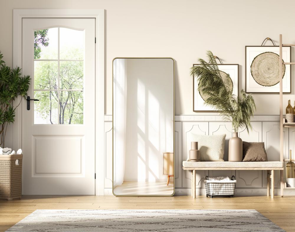 Elevate your home decor with this versatile wall mirror that combines functionality and modern design. Made from a sturdy combination of MDF, iron, and reflective mirror glass, this piece is built to last while adding a polished finish to any room. The extended depth of the frame not only provides a striking dimensional effect but also ensures the mirror’s presence commands attention as a focal point. Whether you're decorating a bedroom, bathroom, or entryway, its diverse shapes—including rectangle and square—offer plenty of options to suit your style. The hand-painted black, brass, or silver finish brings a subtle yet striking touch, complemented by rounded corners for a smooth and contemporary aesthetic. with four metal inset hangers, it's ready to hang vertically or horizontally, ensuring flexibility for any layout. Available in multiple sizes, this mirror is a statement piece that blends seamlessly into both modern and classic spaces.