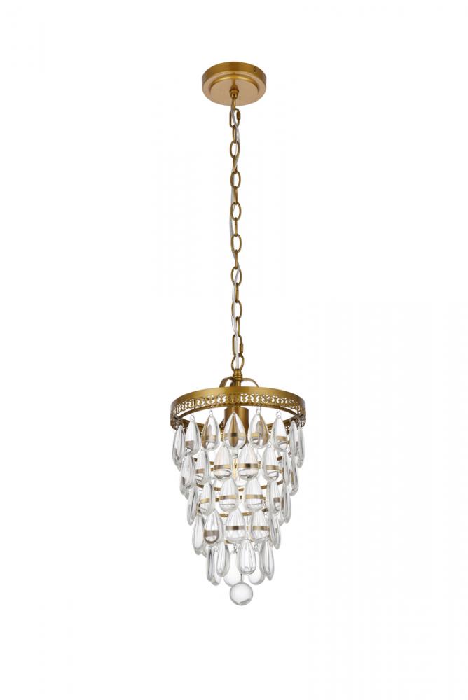 This one light pendant is sure to look great in your space. The circular canopy, hanging chain, and socket are made from metal of your choice of finish. It features a cascading tiers of crystal drops that encases one medium socket. This fixture takes one 40W bulb, (not included) that wash your space in a bright glow. It's compatible with a dimmer switch, so you'll always have the right amount of light no matter the time of day.