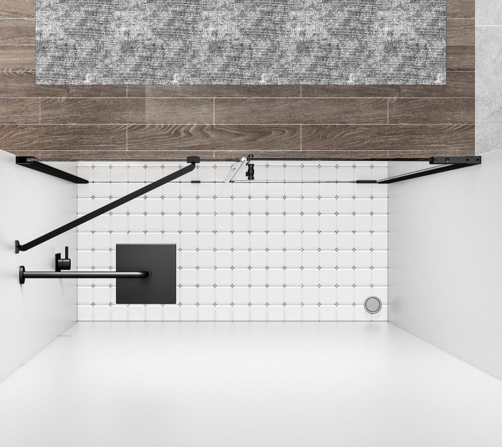 Semi-frameless hinged shower door 48 x 72 Matte Black
