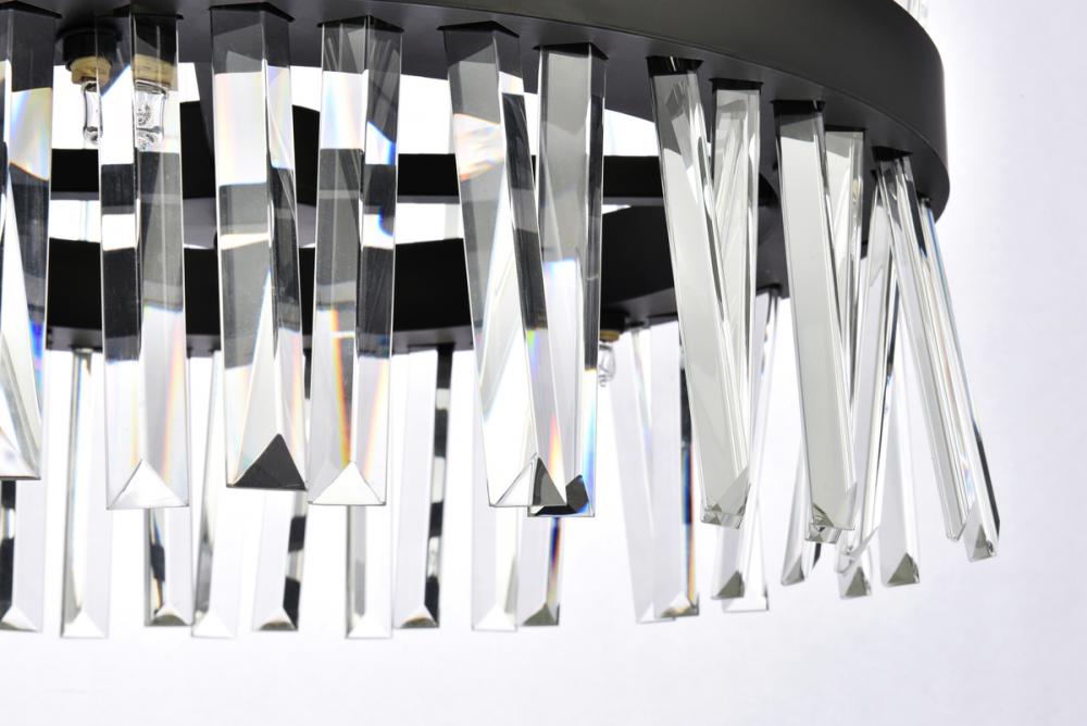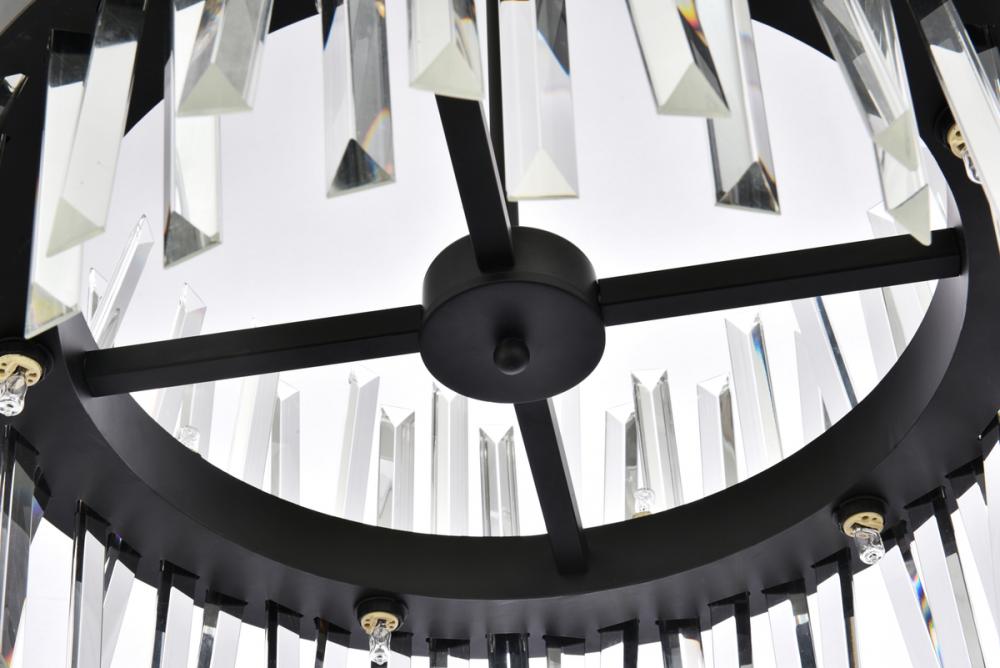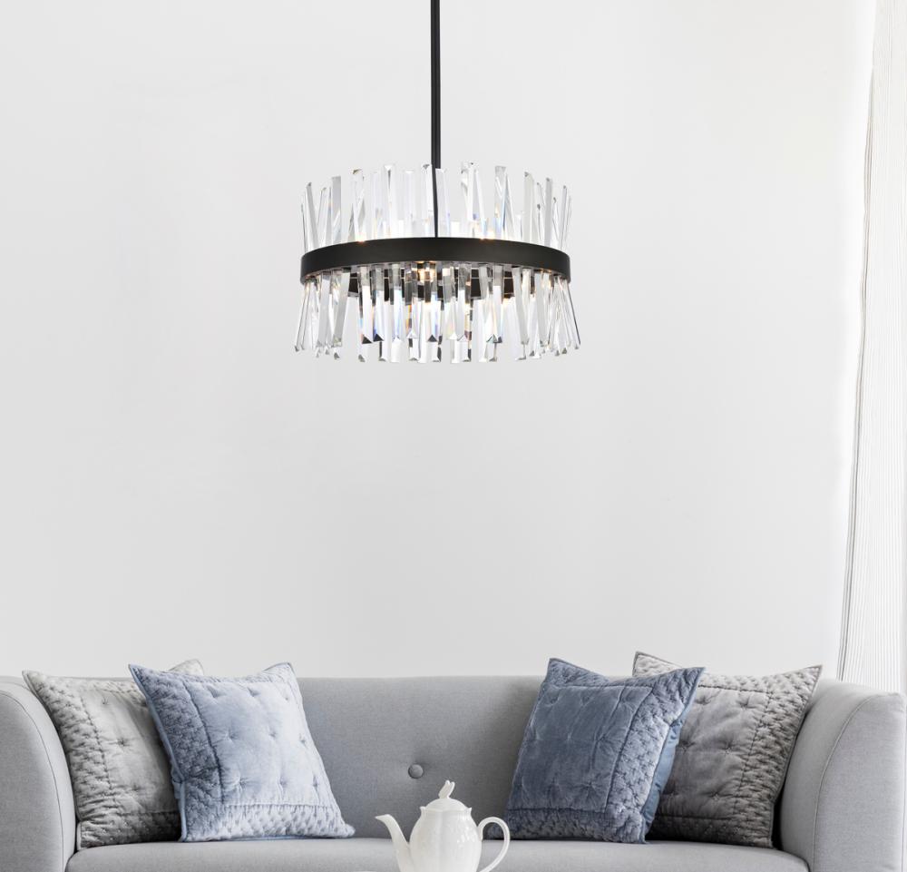 Modern crystal chandelier features top and bottom tier crystal prisms staggered along the wrought iron frame. The thick metal frame wraps around top grade crystal prisms ensure it is built to last, definitely worth it. Hang this work of art and dim the lights for a bit of sophisticated lighting in your home. Get lost in a beautiful light and sleek design available in multiple finishes. The hanging rod conveniently comes with a slope ceiling adapter, perfect for your vaulted or angled ceiling.