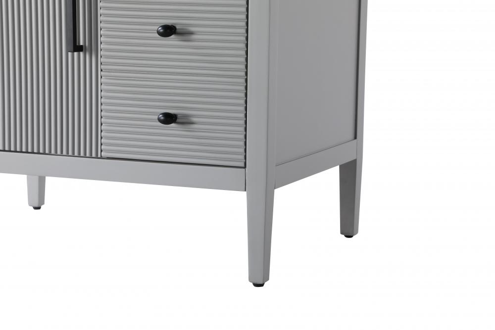 The textured fluted design on the door and drawer panels adds visual interest and elegance, creating a balance of classic charm and contemporary style.