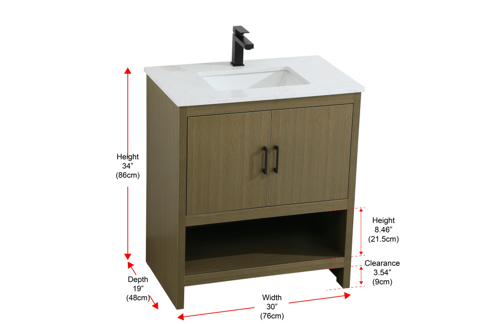 Vanity Cabinet 2Dr W30''xD19''xH34" Chestnut Brown