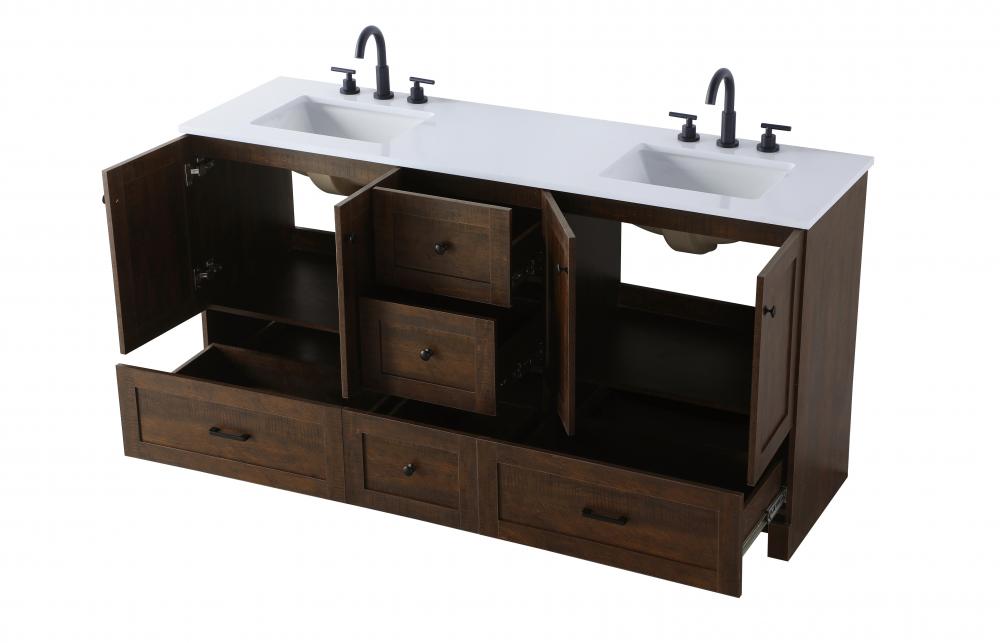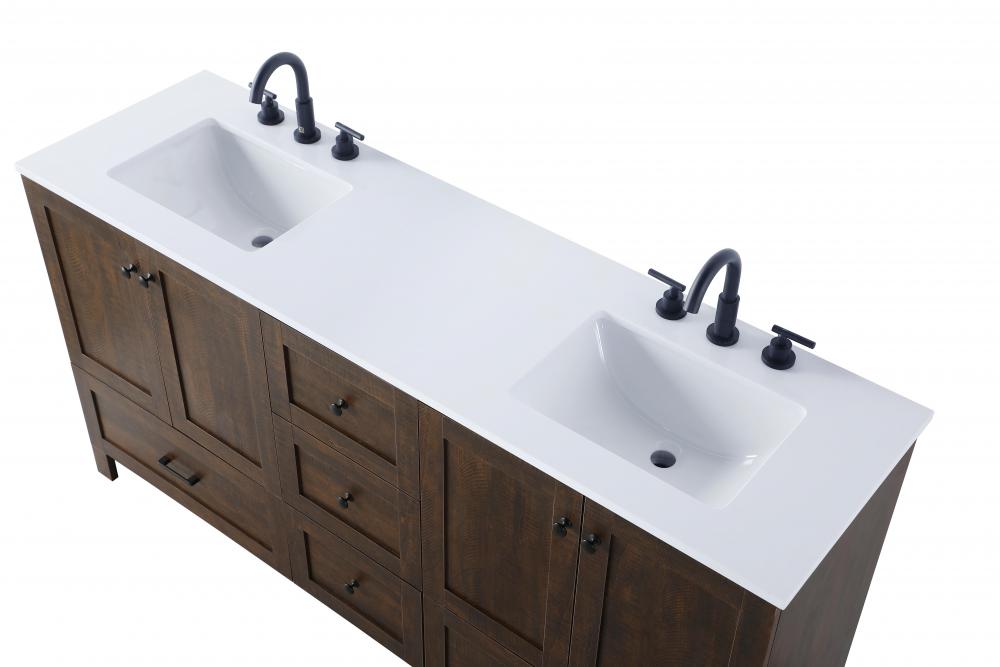 Revel in the beauty of a vanity that mimics the charm of real wood without the maintenance, boasting a faux wood look that adds a touch of natural warmth and rustic sophistication to your bathroom.