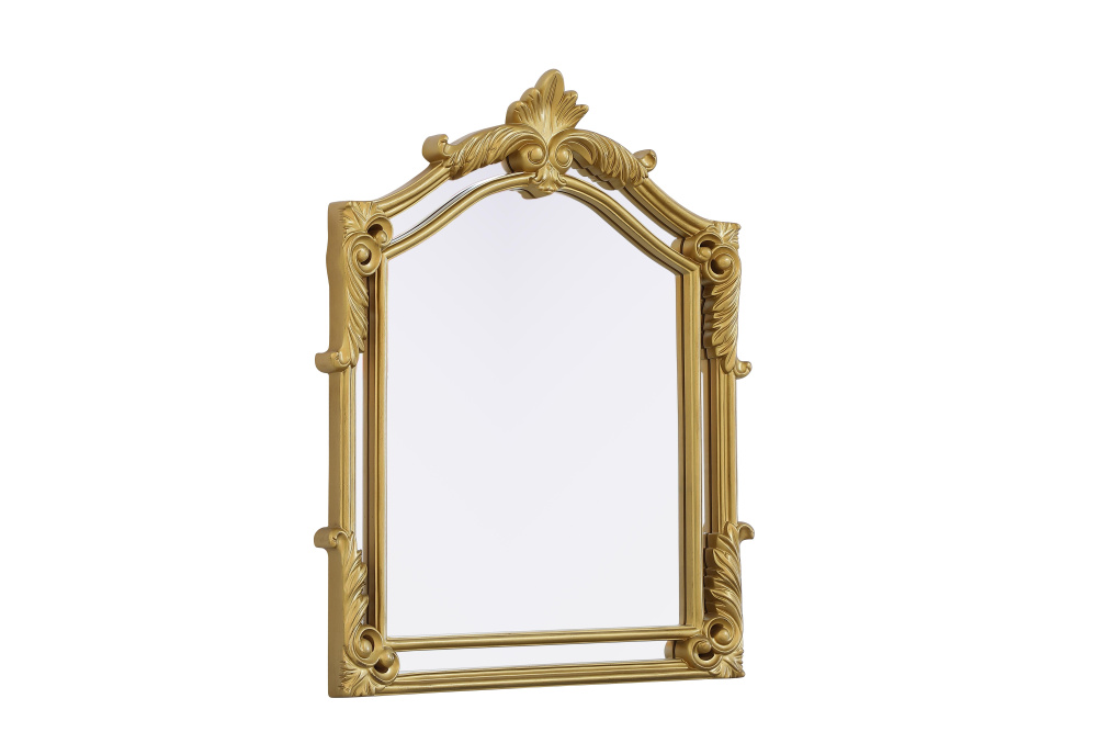 Bring the charm of a bygone era into your home with this ornate gold mirror, a true reflection of craftsmanship and timeless design. Featuring a hand-painted gold leaf finish, this mirror radiates warmth and sophistication, accentuating its intricate scrollwork and sculpted flourishes. Crafted from resin and MDF, the frame boasts ornamental detailing, reminiscent of European baroque and rococo influences. Designed for both practicality and artistry, this mirror comes with two inset metal hangers, making it easy to mount securely on any wall. Available in multiple sizes, it adapts effortlessly to different spaces—whether as a grand statement in an entryway, a luxurious focal point in a living room, or an ornate touch above a dressing table or fireplace. The gold leaf finish gives this mirror an antique-inspired glow, making it a perfect complement to traditional, vintage, and even eclectic interiors. Whether you're curating a Parisian-inspired bedroom or enhancing a classic hallway, this mirror brings a sensof grandeur and refinement to any setting.