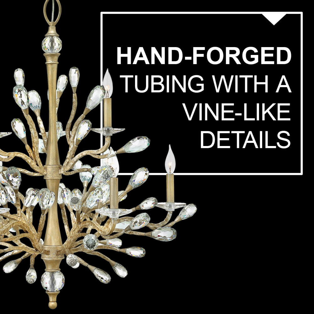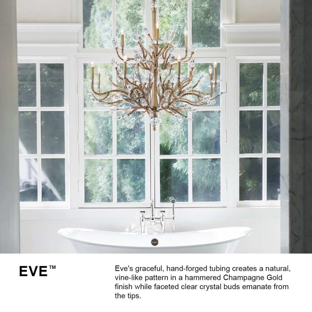 Eve's graceful, hand-forged tubing creates a natural, vine-like pattern in a hammered Champagne Gold finish while faceted clear crystal emanate from the tips.