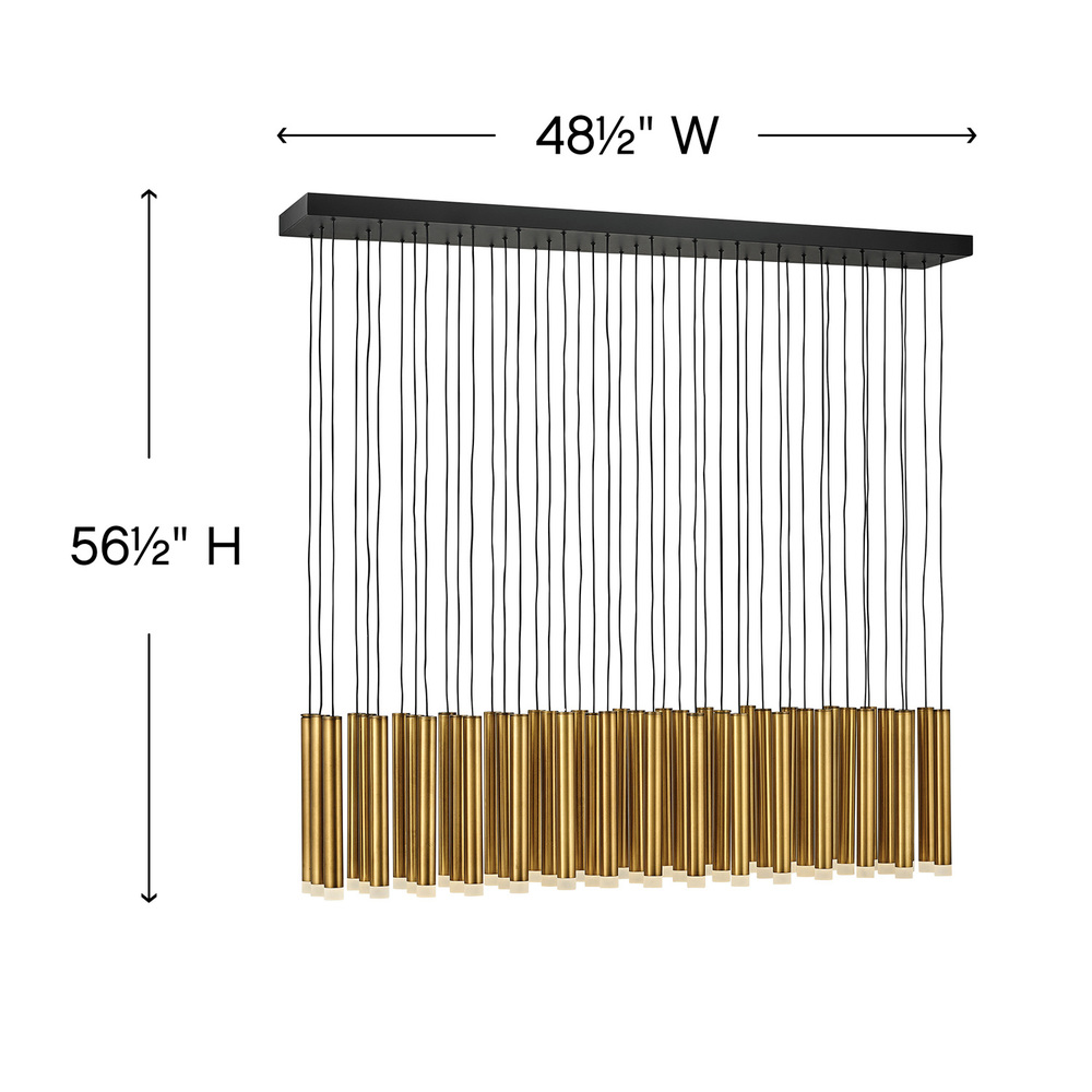Harmony orchestrates the perfect blend of style and technology. Drawing inspiration from the enduring formation of wind chimes, the sleek Black or Heritage Brass tubes gleam with a glow that emanates from the lowest point of each column. Harmony is easily adjustable with many customizable configurations and is integrated with fully dimmable LEDs.