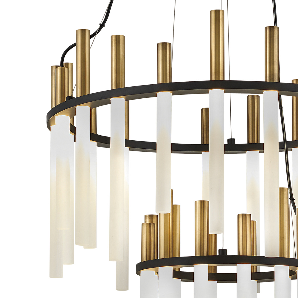 Echo's spectacular, integrated LED design reverberates with modern style. Sleek, glowing acrylic rods are crowned in metal tubes giving a contemporary look. Echo is offered in Heritage Brass finish accented by bold Black.