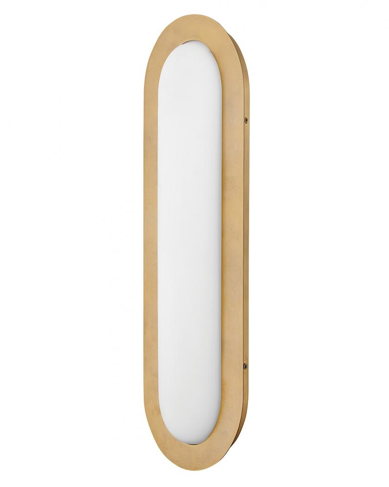 Beautifully retro, Emme showcases a midcentury-inspired elliptical design. Etched opal glass surrounded by a robust, oversized frame creates a vintage feel and soft, warm illumination. Versatile sconce silhouettes feature concealed on/off switches and removable cords to complement any bathroom, kitchen, or living space.