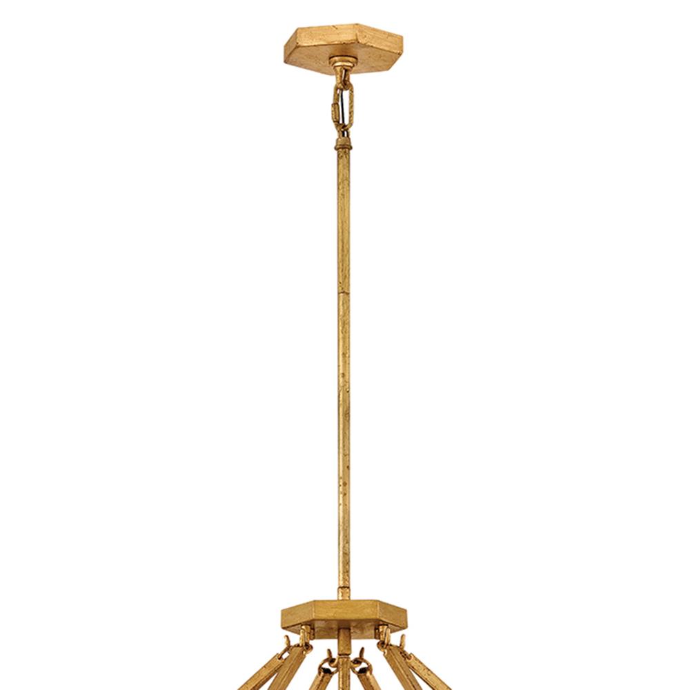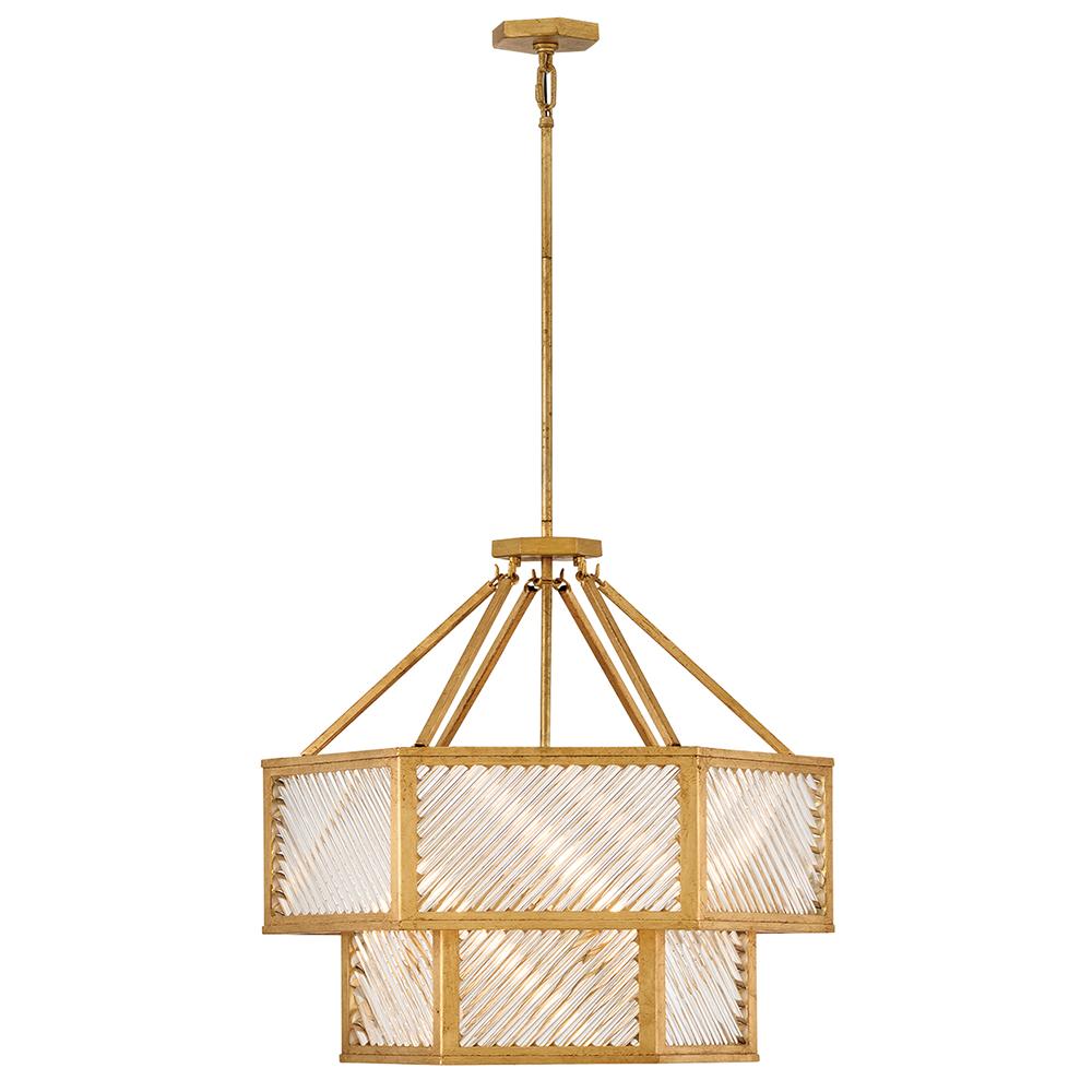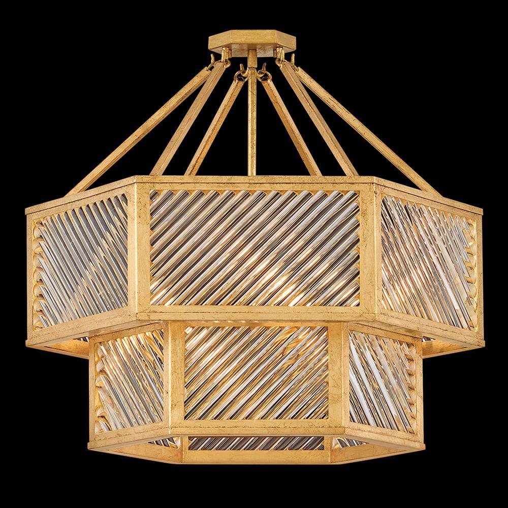 A reimagining of vintage designs from the 40s and 50s, Sura’s transitional, hexagonal Distressed Brass frame creates a glamorous yet understated and tailored appeal. Cylindrical glass rods set at alternating angles echo a soft herringbone pattern, juxtaposing geometry within geometry. Layered details create a reeded effect that is reflective and alluring.
