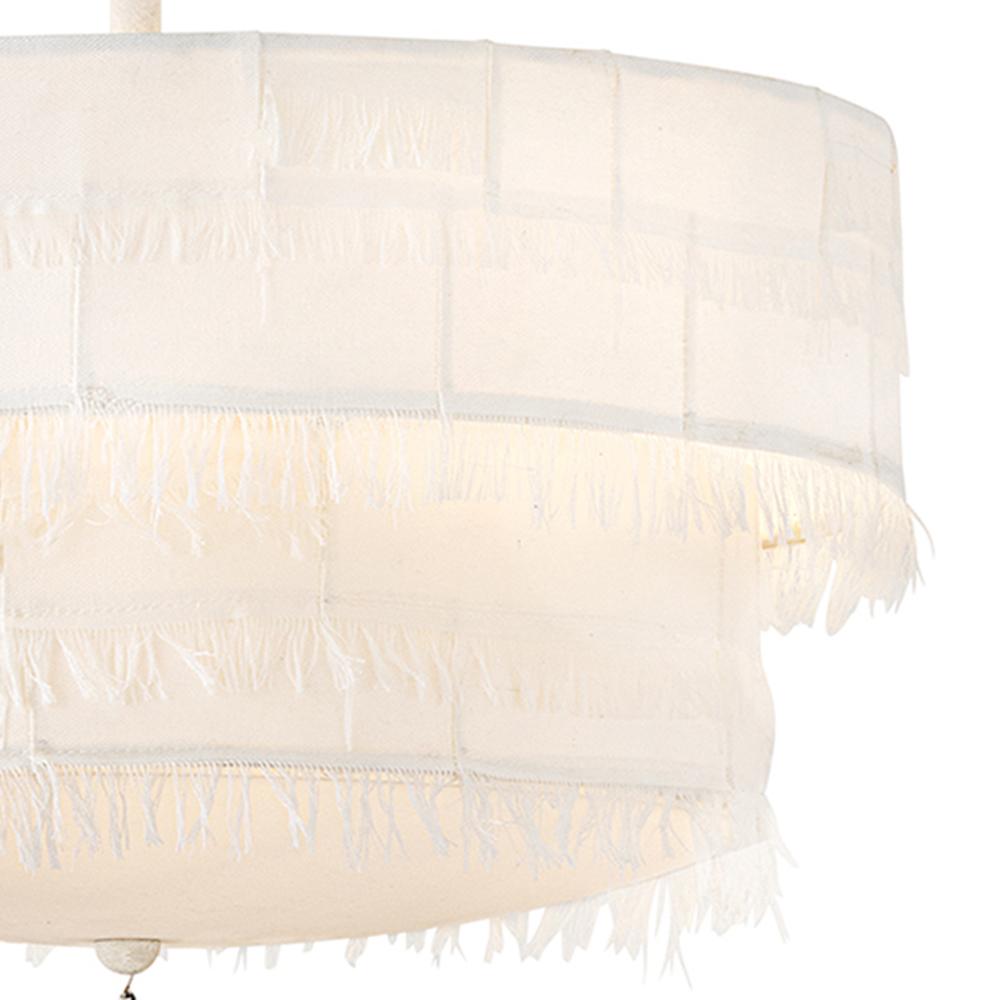 Taking a nod from current distressed fashions, Baya’s soft, hand-sewn patchwork shade creates a light and elegant feeling. Its coastal cottage style and chic texture make an artsy transitional statement complemented by a leather tassel, comfortable dimmable lamping, and a Textured Plaster finish.