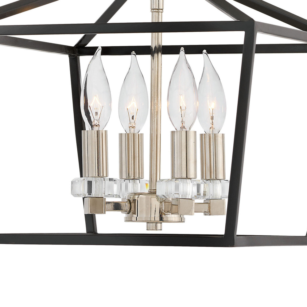 For a classic statement-maker, Stinson hits the mark. A robust open and airy cage, designed for maximum impact in Distressed Brass or Black with Polished Nickel finish, is accompanied by refined sparkling crystal accents to create the perfect mix of traditional appeal and industrial panache.