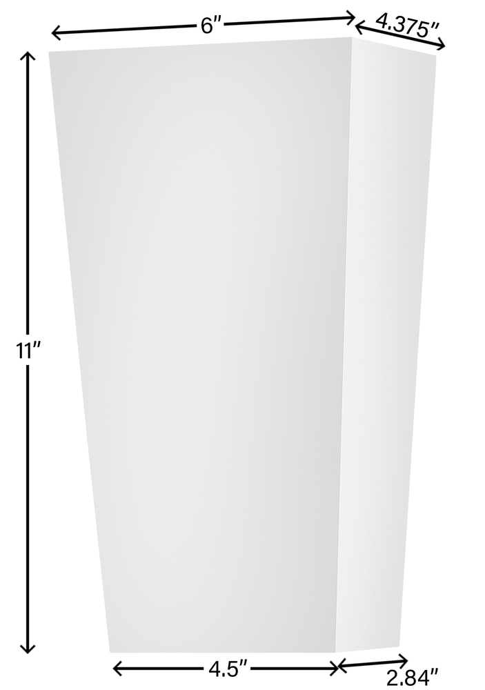 Cruz catches the eye with its modern, sleek design and trapezoidal silhouette. Available in Black and Textured White finish options, Cruz emits a beautiful wall wash illumination through the etched glass to enhance modern façades. Mounting versatility allows individuals to display either the small or large side up or down. LED bulb is included.