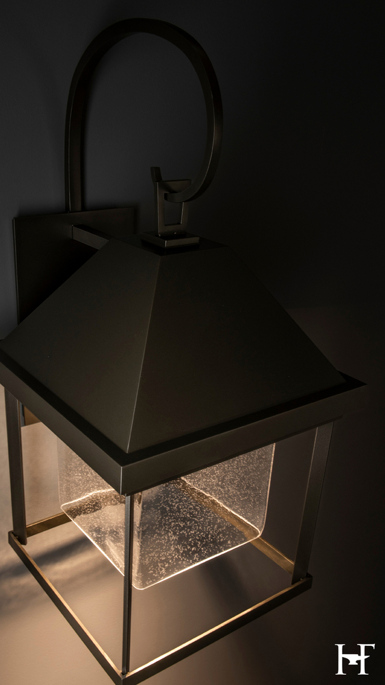 Protect the night skies and help to preserve a grand view of the constellations with this Dark Sky Friendly outdoor collection. This Dorset wall-mounted sconce sets a warm greeting as a first impression on approach. With its square face and pyramidal roof set off by a stylized shepherd's staff-like element, designer Paul Marr Hilliard created a fixture that serves as both a critical light source and decorative element. Offered in a choice of AAMA 2604-rated Coastal Outdoor Finishes. A choice of opal or clear, seeded glass is available.