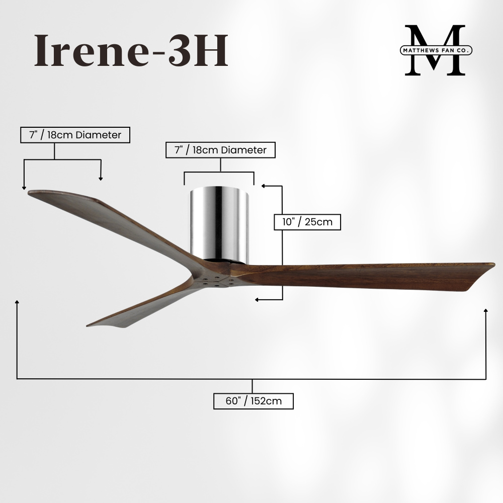 Matthews Fan Company IR3H-CR-WA-60 - Irene-3H - Three Blade Flush Mount Paddle Fan - 60" - Polished Chrome Finish - Walnut Tone Blade