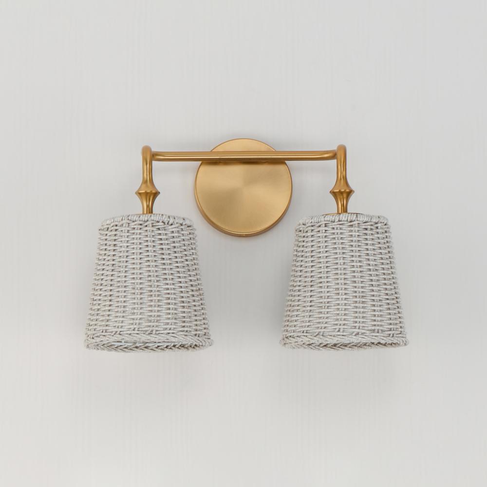 Featuring wicker shades made of synthetic rattan, this bath vanity lighting collection brings an elegant coastal flair to your space. Choose from a Natural wicker finish with a Dark Bronze frame accented by brushed golden highlights, or a Weathered White r