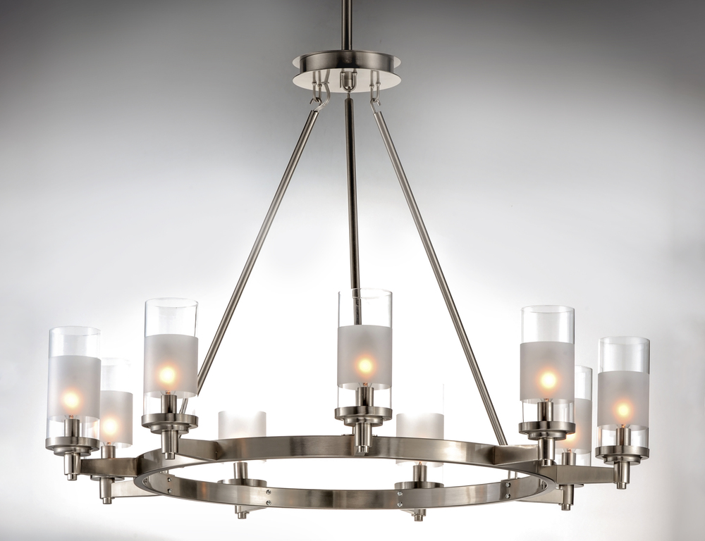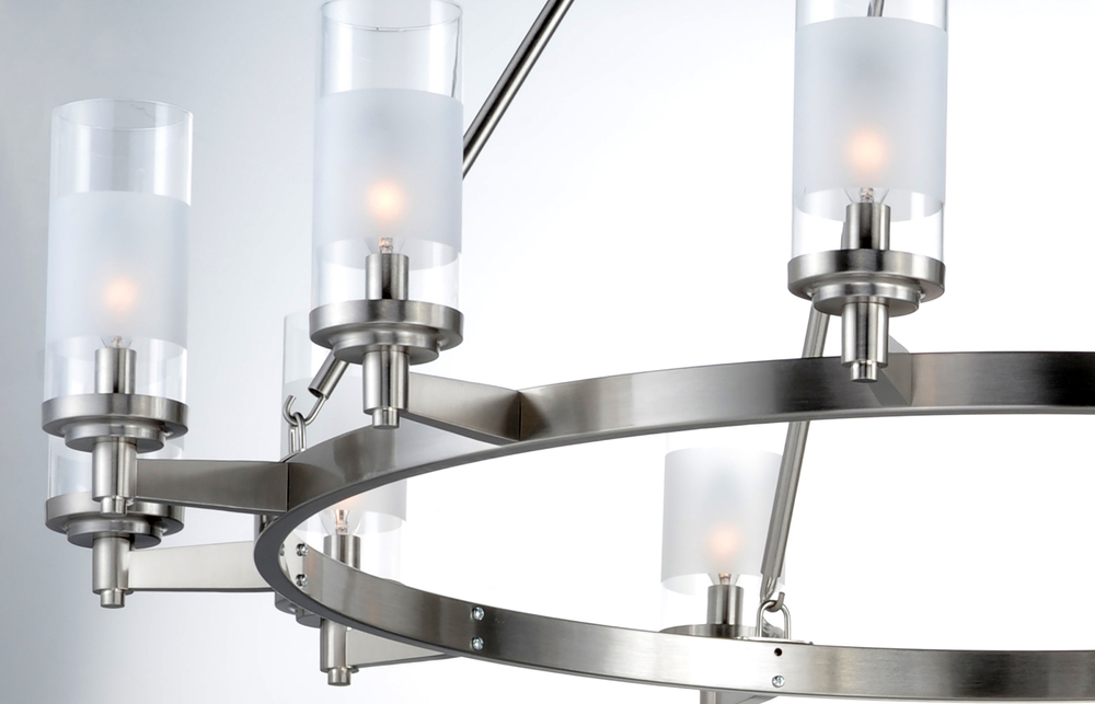 The Ring Fixture Has Become A Staple In Today's Interior Decor. This Collection Features A Transitional Design Which Works In Both Contemporary And Traditional Applications. Available In Satin Nickel Or Oil Rubbed Bronze, The Rings Radiate Elongated Cast Arms That Cradle Cylindrical Clear Glass Shades With A Frosted Band To Eliminate Glare.