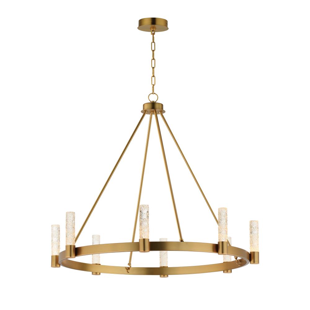 The Duchess collection seamlessly blends traditional brass craftsmanship with modern piastra-style Iceberg glass, illuminated by integrated LED modules. Powered by a commercially rated LED driver with 120-277V input, the low-voltage LEDs deliver a neutral