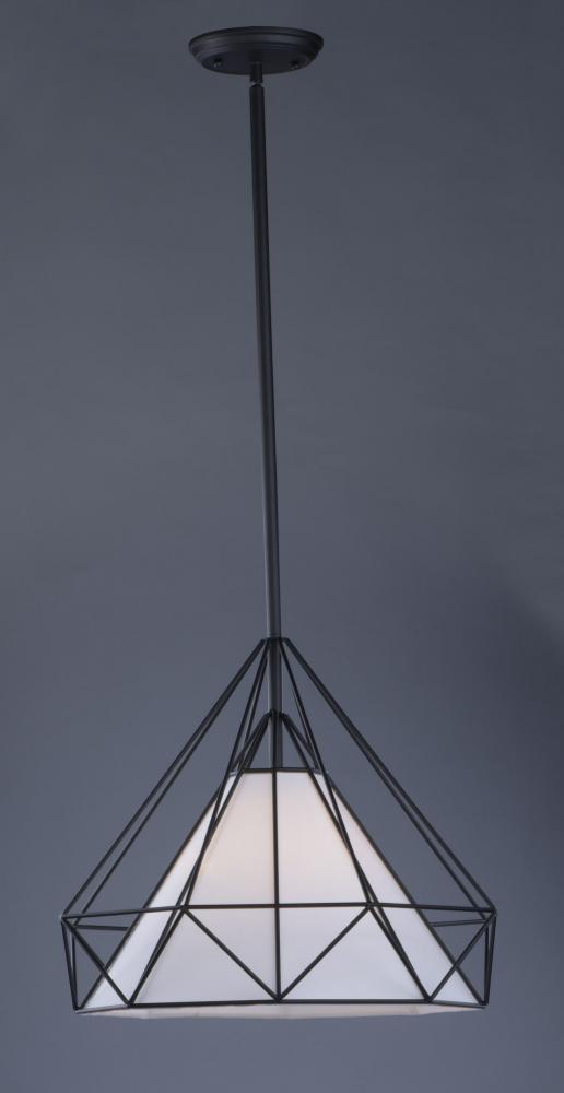 A Black metal geometric frame supports a White Linen fabric shade that creates an upscale contemporary look and a very attractive price.