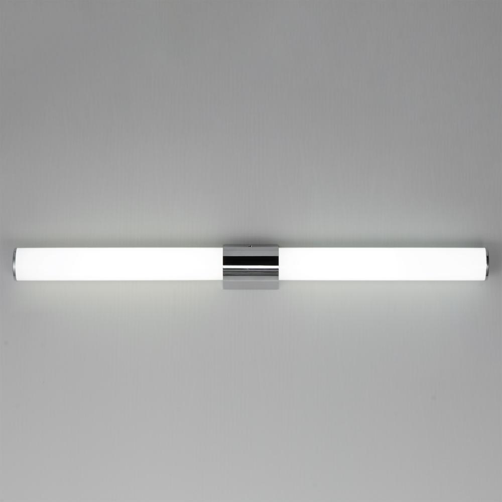 A tube of light extends in both directions in this clean and contemporary LED wall sconce. Available in various lengths and finishes, the fixture can either be mounted directly from its frame on a single gang box or with the use of the five inch cover plat