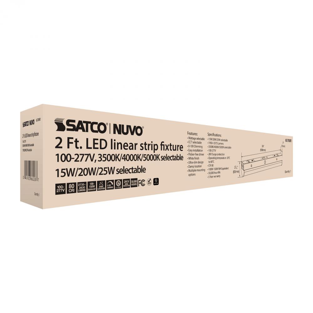 SATCO NUVO's 65-700R1 2-foot LED Linear Strip Fixture offers adaptable lighting for diverse applications. This field-selectable fixture provides wattage options of 15W, 20W, or 25W and color temperature settings of 3500K, 4000K, or 5000K. With a univer