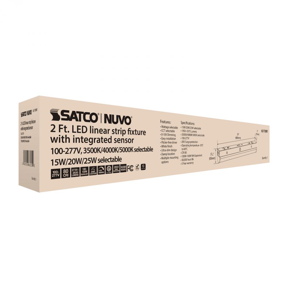 SATCO NUVO offers LED Linear Strip Fixtures in 2, 4, and 8-foot sizes, providing versatile lighting solutions for a range of applications. All fixtures are CCT selectable with 3500K, 4000K, and 5000K options, allowing users to adjust the color temperature